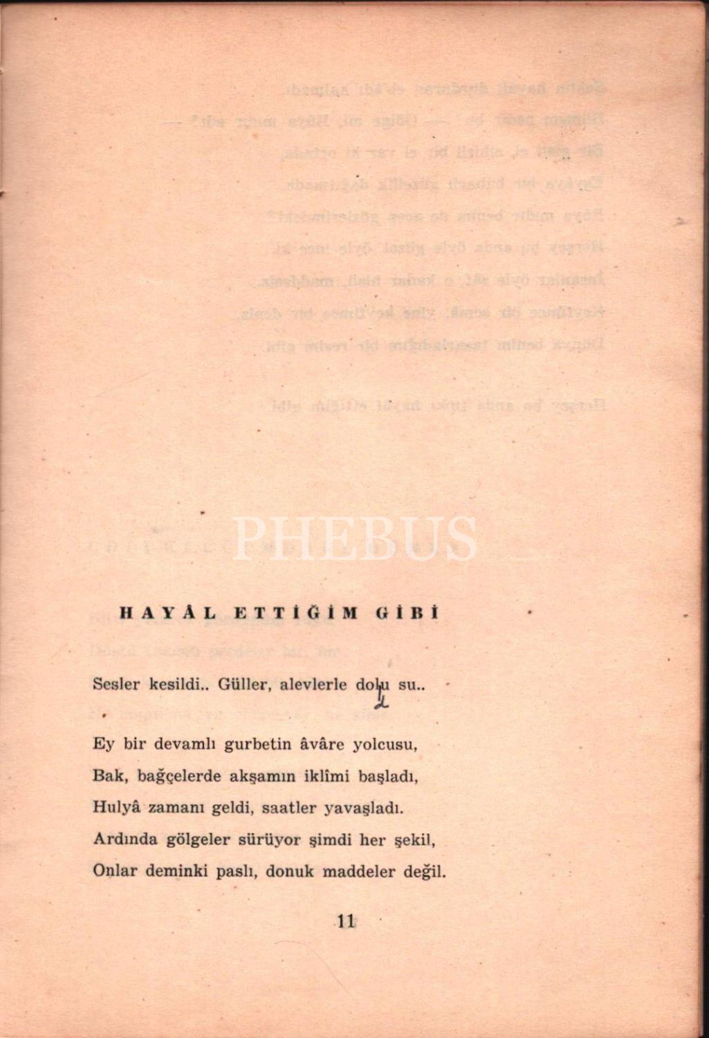 Servet-i Fünûn şairlerinden Faik Ali´nin oğlu, Hisar dergisi kurucularından Munis Faik Ozansoy´un (1911 - 1975) ikinci şiir kitabı… Ses sanatkârı ve bestekâr Necmi Rıza Ahıskan´a imzalanmış.