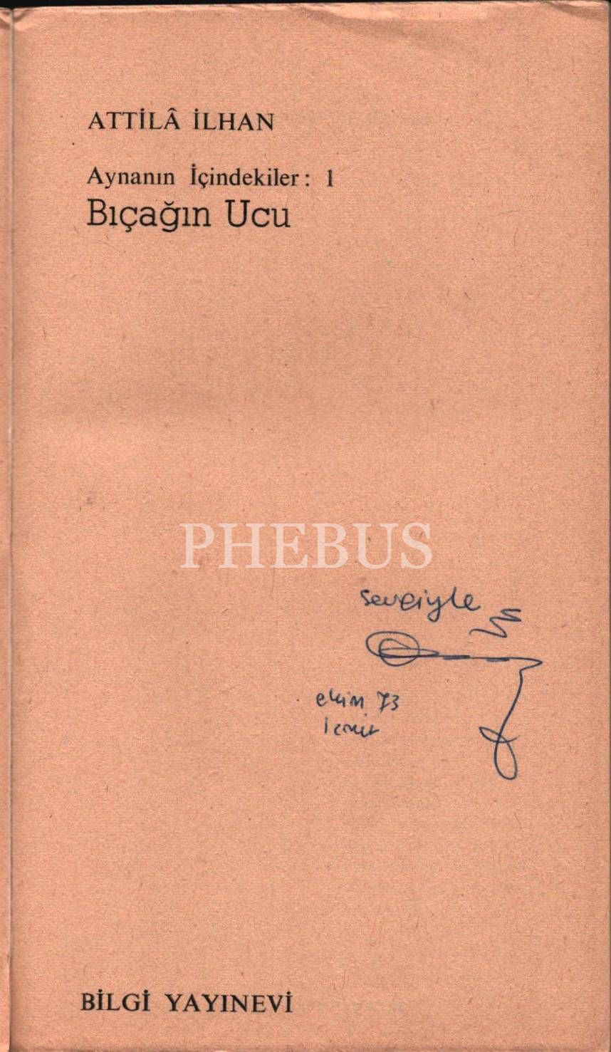BIÇAĞIN UCU, Attilâ İlhan, 1973, Bilgi Yayınevi, 526 sayfa, 11x19 cm… İTHAFLI VE İMZALI…