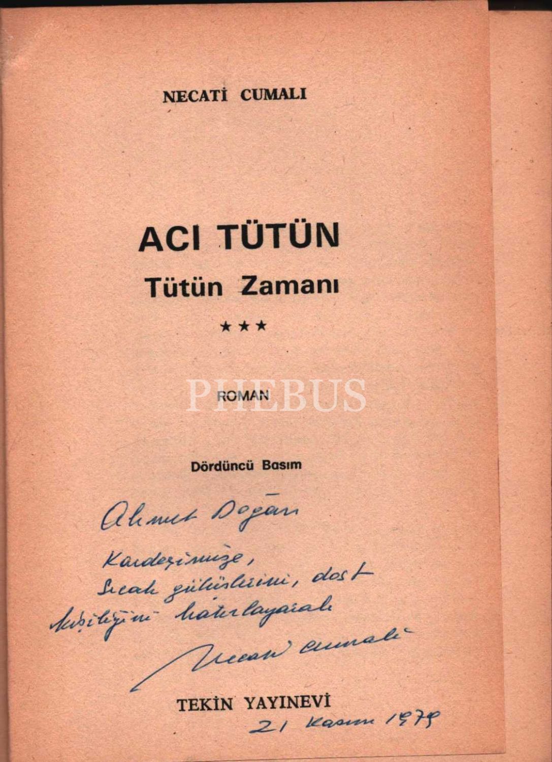 ACI TÜTÜN, Necati Cumalı, 1979, Tekin Yayınları, 304 sayfa, 13,5x19,5 cm… İTHAFLI VE İMZALI…