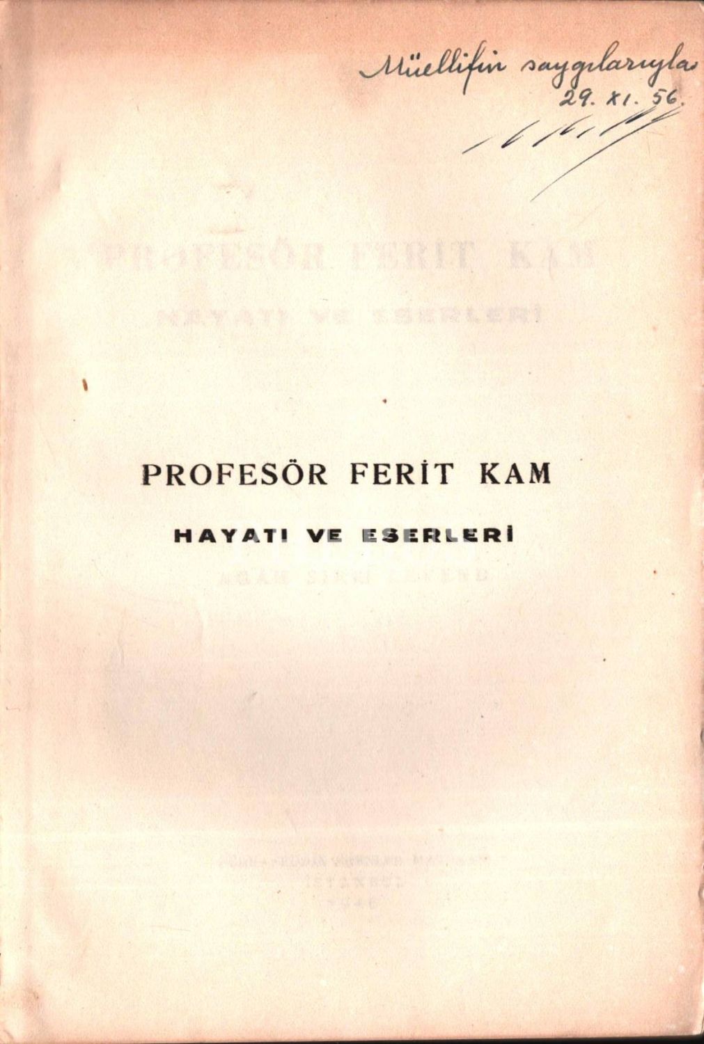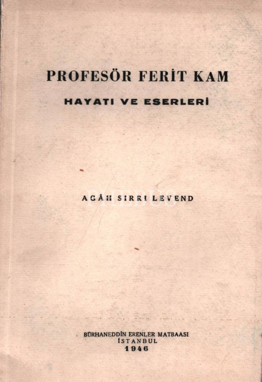 PROFESÖR FERİD KAM - Hayatı ve Eserleri, Agâh Sırrı Levend, 1946, Burhaneddin Erenler Matbaası, 162 sayfa, 15x23 cm… İTHAFLI VE İMZALI…