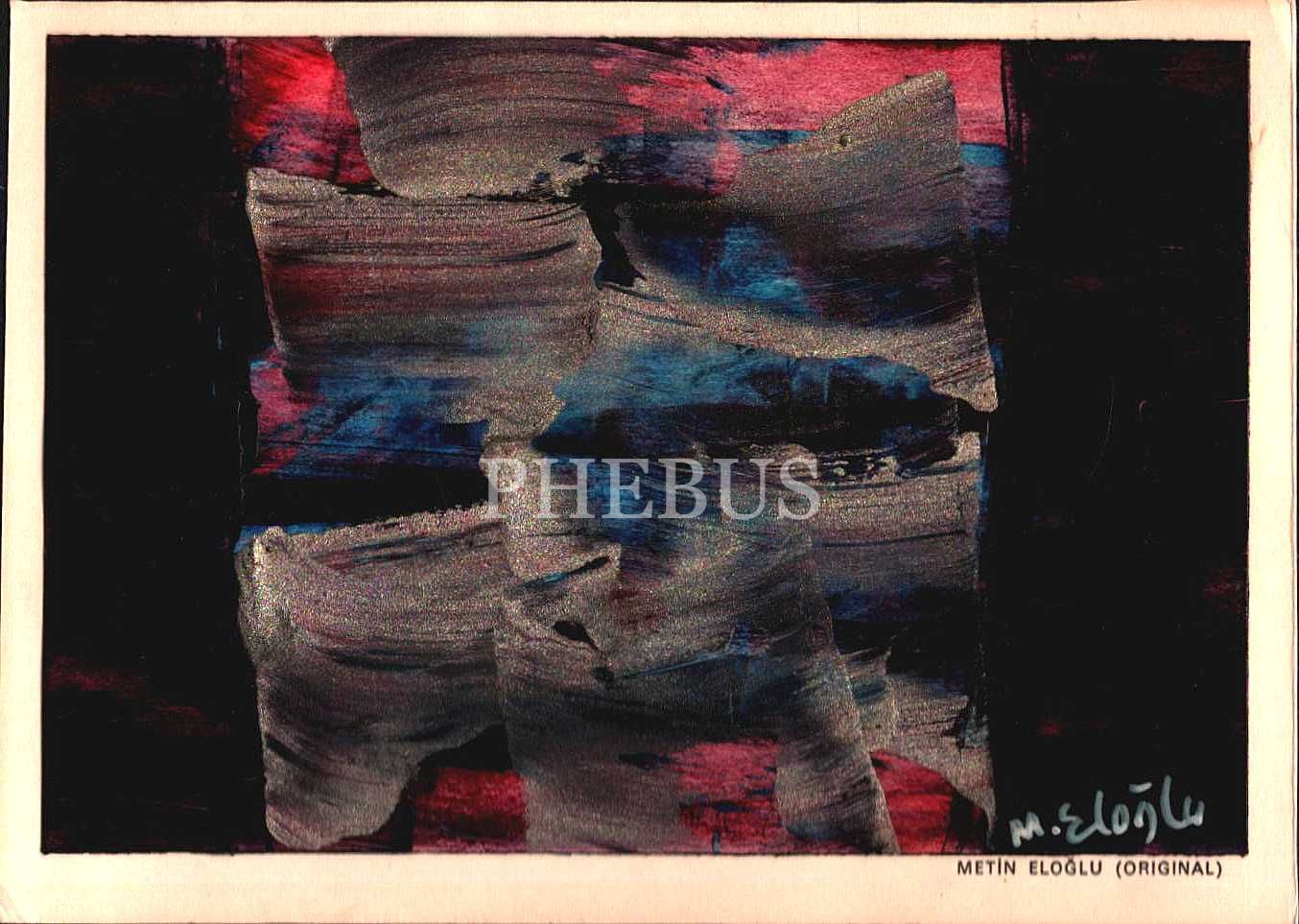 METİN ELOĞLU imzalı, karton üzerine yağlıboya kompozisyon, 16x11 cm…
