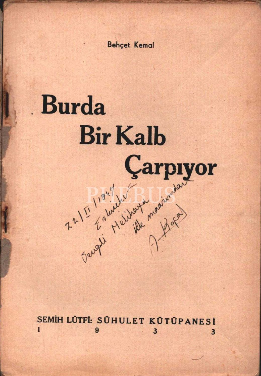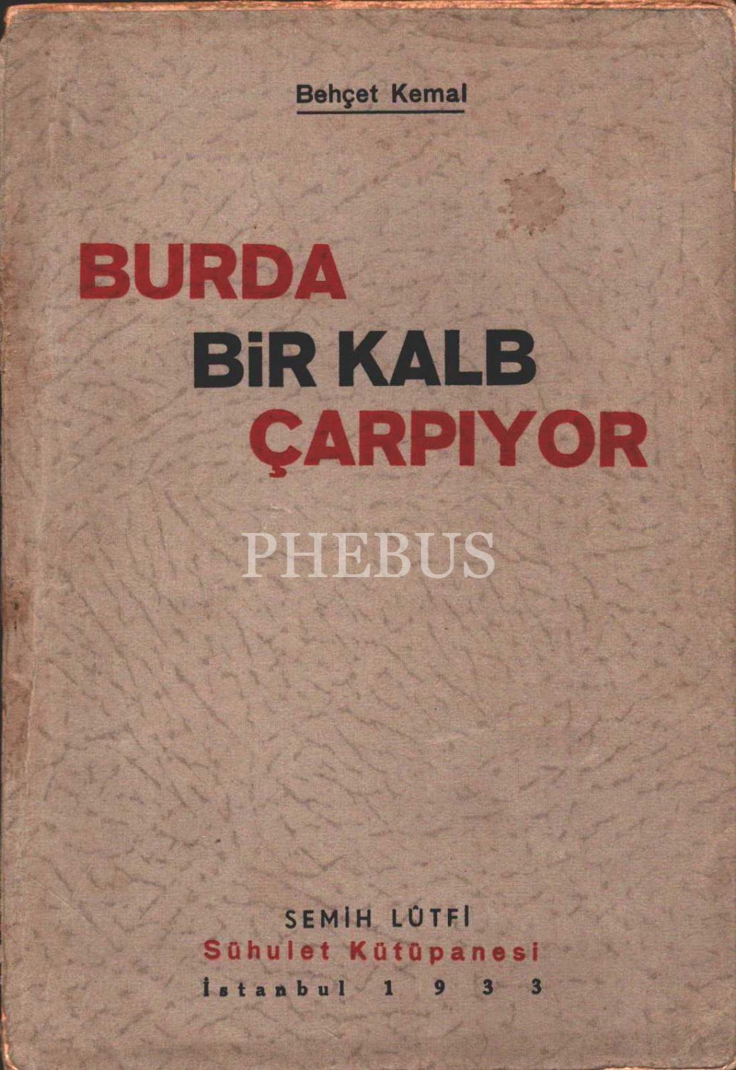 BURDA BİR KALB ÇARPIYOR, Behçet Kemal, Semih Lûtfi Sühulet Kütüphanesi, İstanbul 1933, 170 sayfa, 14x20 cm