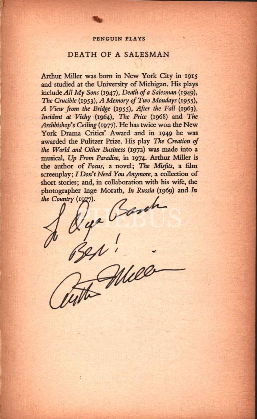 Arthur Miller tarafından ithaflı ve imzalı DEATH OF A SALESMAN, Penguın Books, 1983, 112 sayfa, 11x18 cm