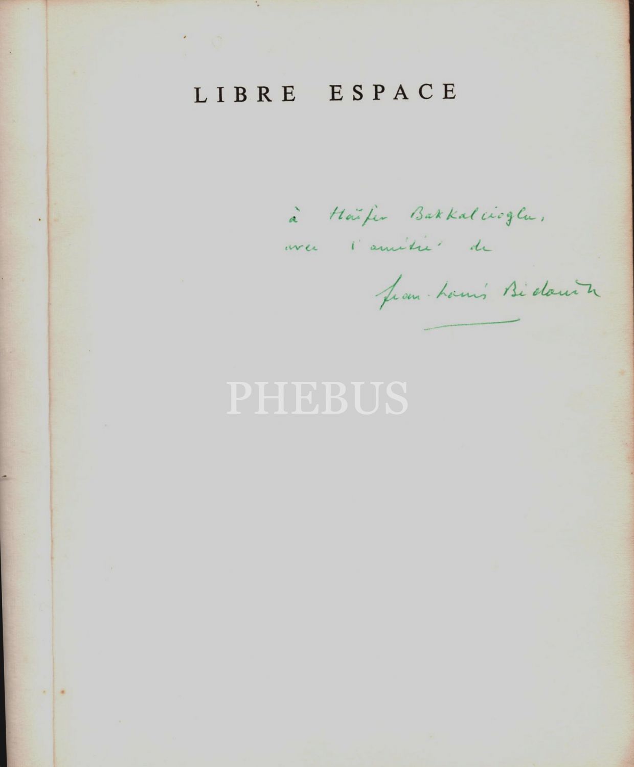 Jean-Louis Bedouin tarafından ithaflı ve imzalı LIBRE ESPACE, Seghers, Paris 1967, 57 sayfa, 19x25 cm