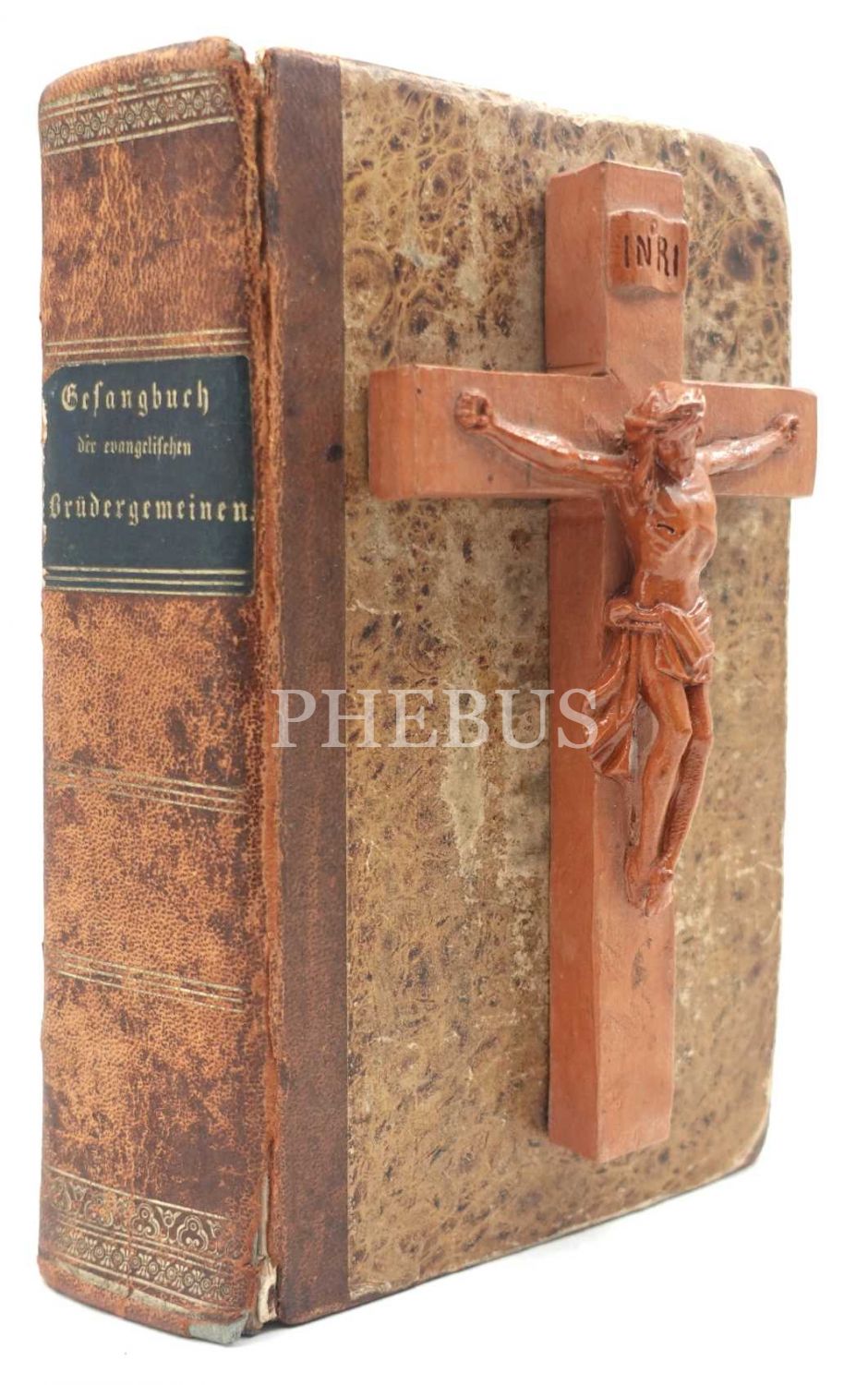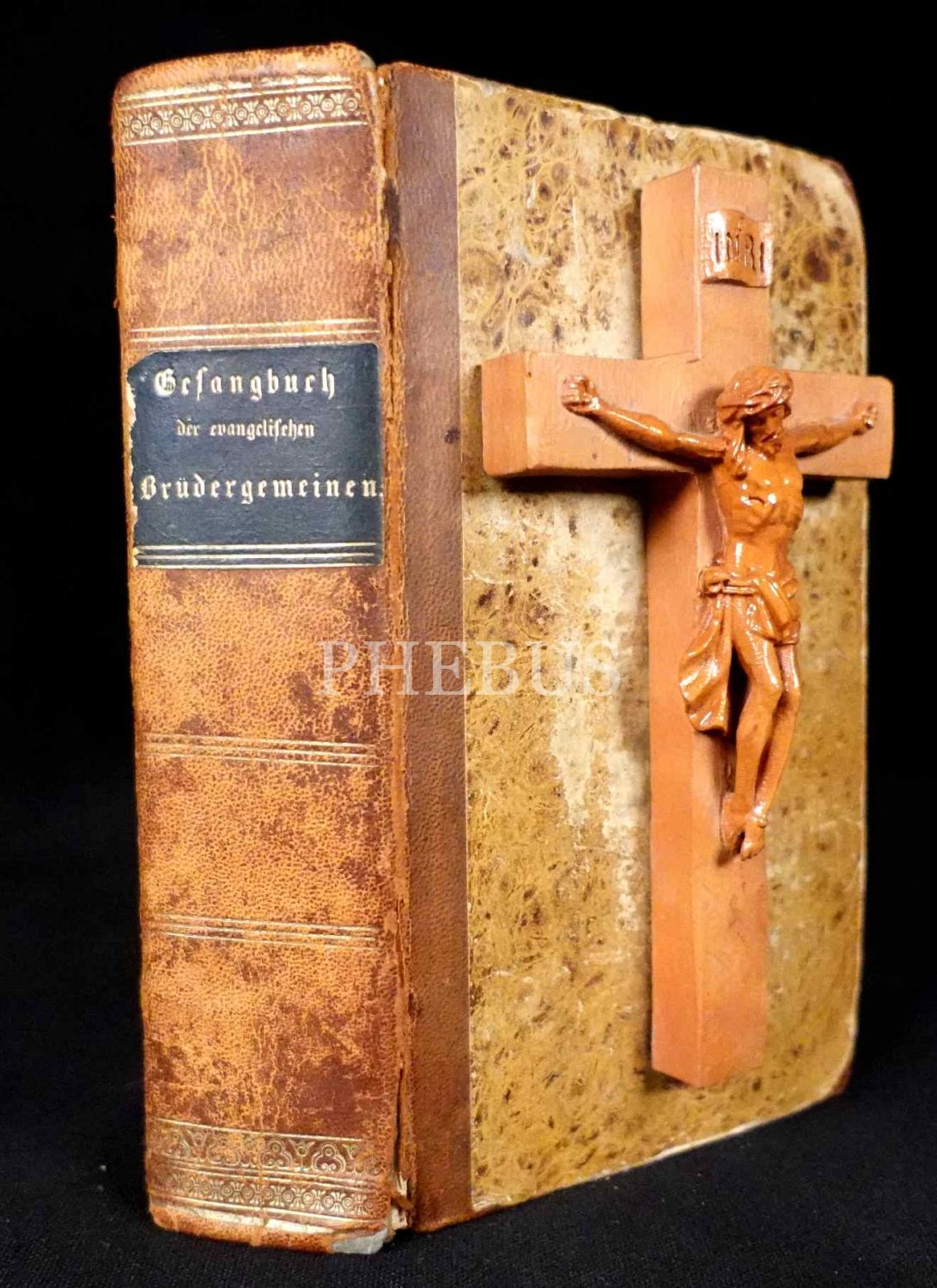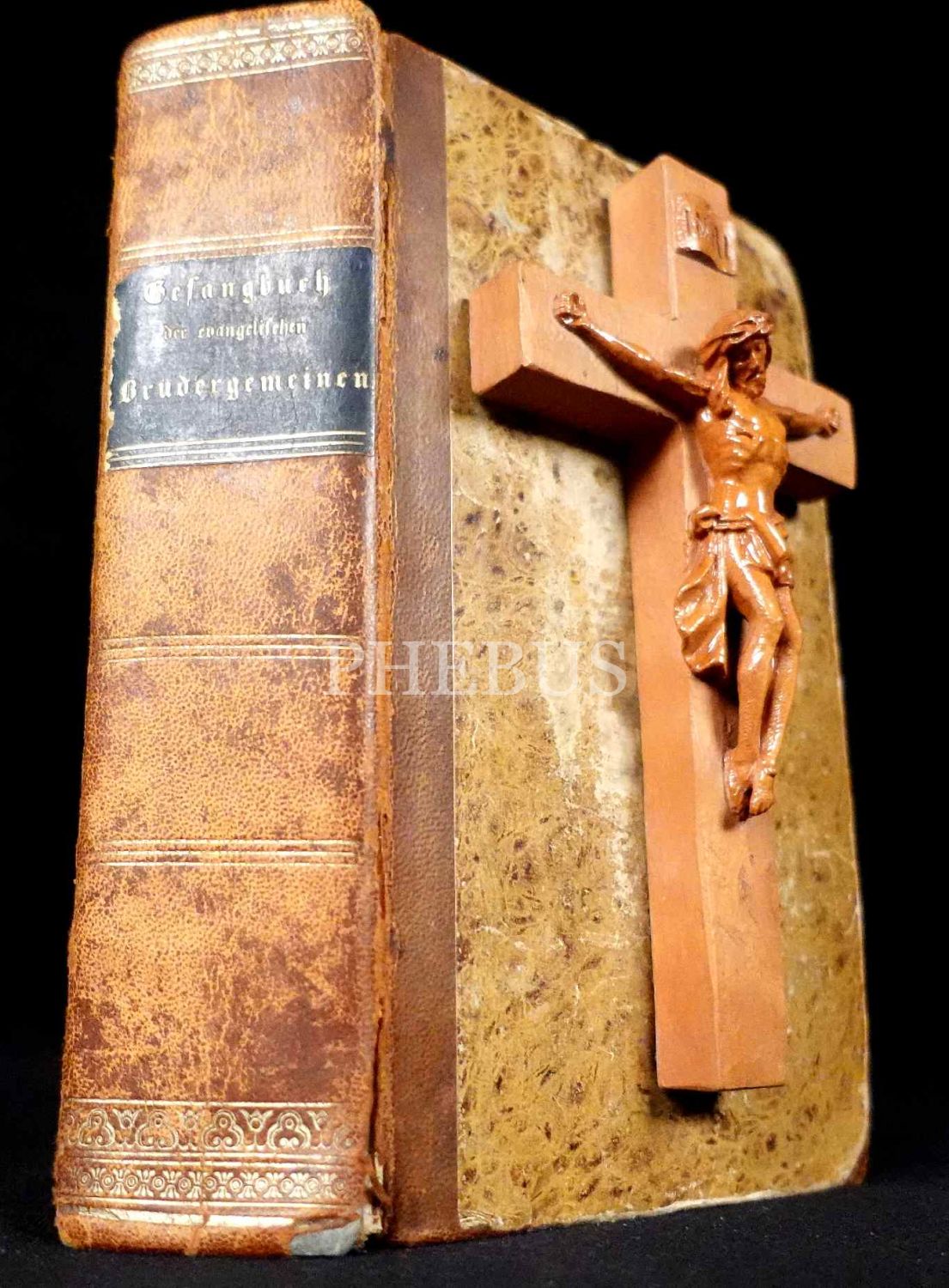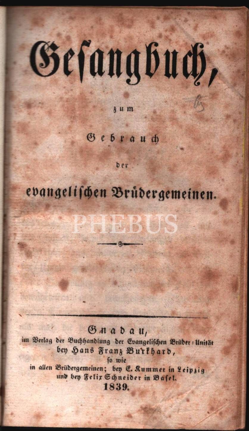 Gotik yazı karakterli Almanca lake ciltli GESANGBUCH ZUM GEBRAUCH DER EVANGELİSCHEN BRÜDERGEMEİNEN, 1839, 836+71 sayfa, 11x18 cm