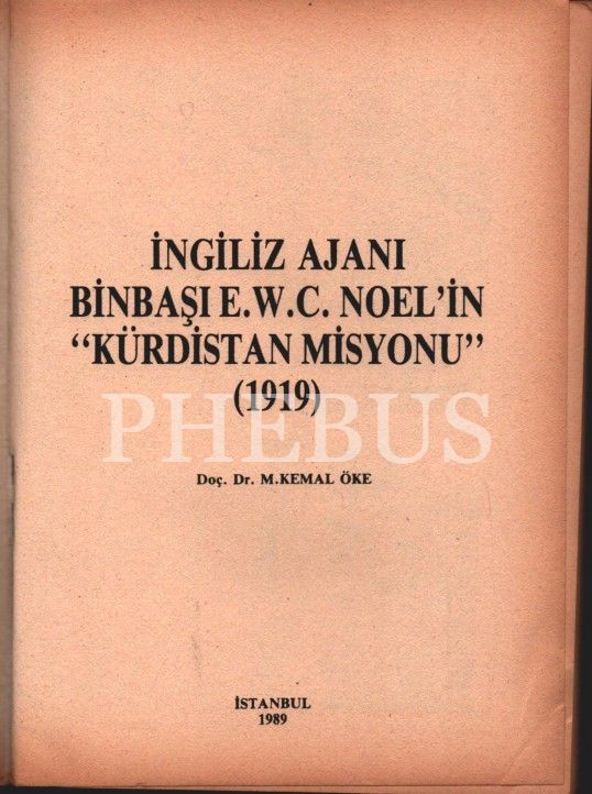 İNGİLİZ AJANI BİNBAŞI E.W.C. NOEL´İN "KÜRDİSTAN MİSYONU" (1919), M. Kemal Öke, Boğaziçi Yayınları, İstanbul 1989, 132, 14x19 cm