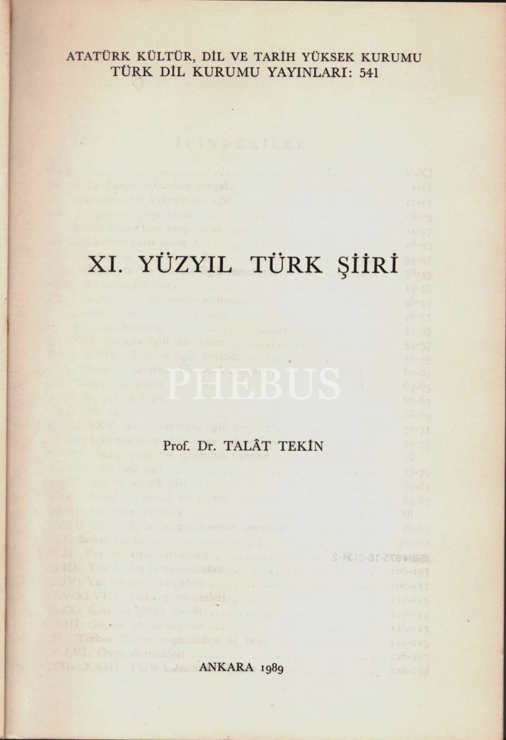 11. YÜZYIL TÜRK ŞİİRİ (Divânu Lugâti´t-Türk´teki Manzum Parçalar), Talat Tekin, TTK Basımevi, Ankara 1989, 272 sayfa, 17x24 cm