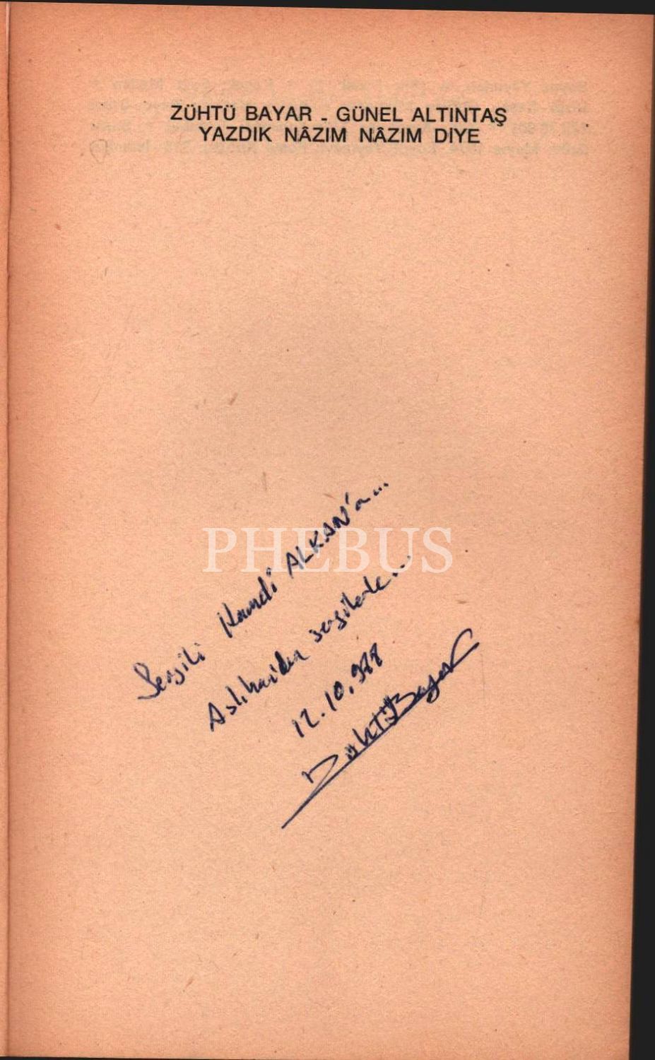 İthaf "Sevgili Hamdi Alkan´a.. Aslıhan´a da sevgilerle... 12.10.1978" şeklindedir.