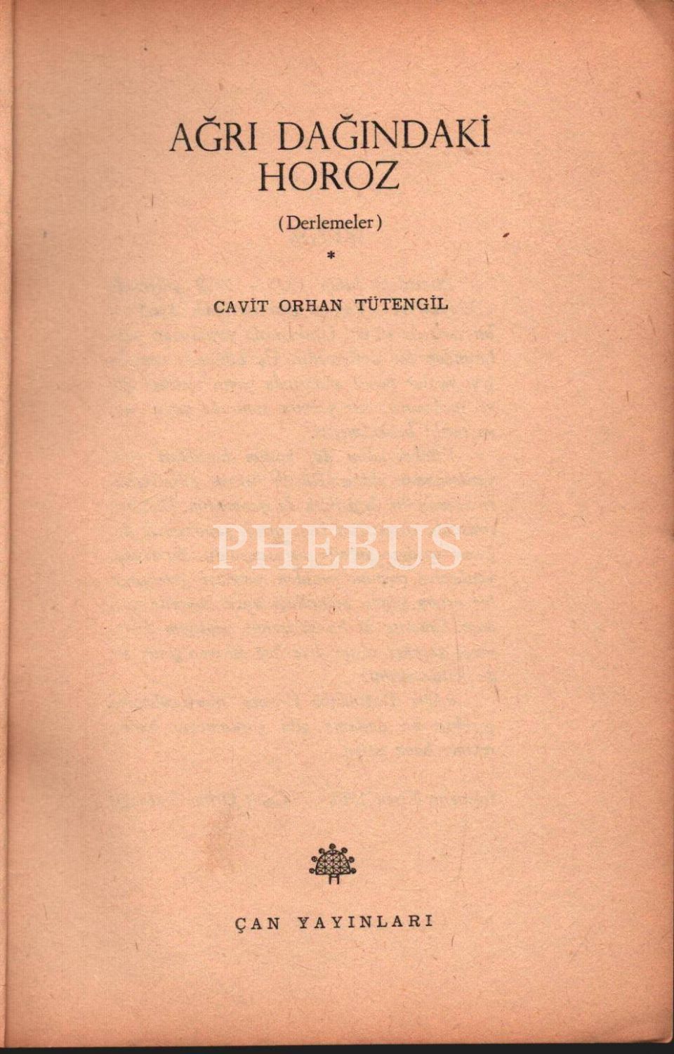 AĞRI DAĞINDAKİ HOROZ (Derlemeler), Cavit Orhan Tütengil, Çan Yayınları, İstanbul 1968, 156 sayfa, 13x20 cm