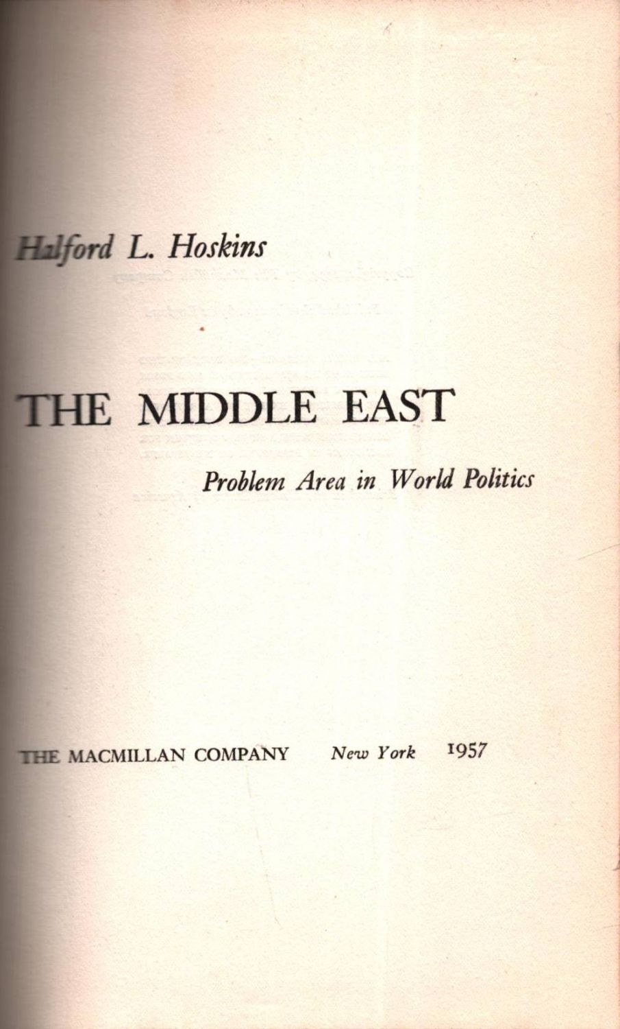 THE MIDDLE EAST, Problem Area in World Politics, Halford L. Hoskins, The Macmillan Company, New York 1957, 311 sayfa, 14x22 cm