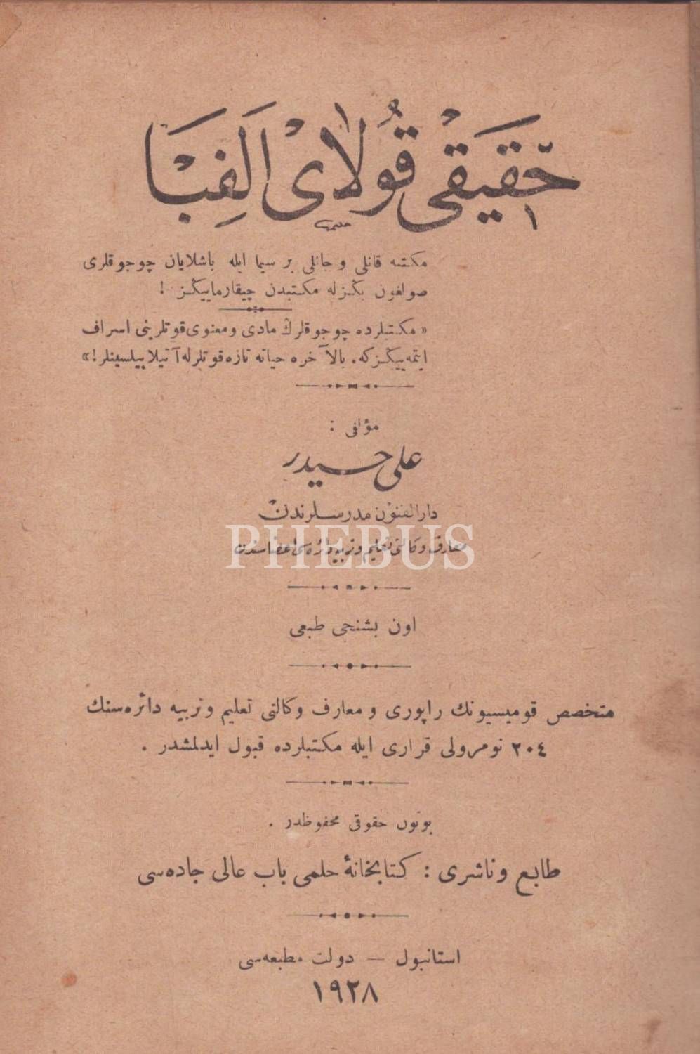 HAKÎKÎ KOLAY ELİFBÂ, Ali Haydar, Devlet Matbaası, İstanbul 1928, 80 s., 14x20 cm