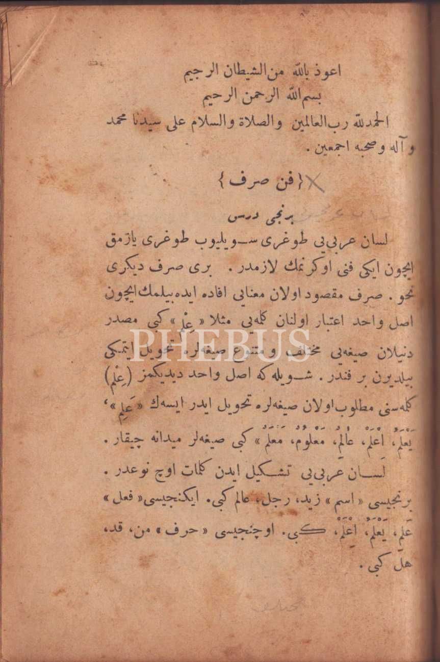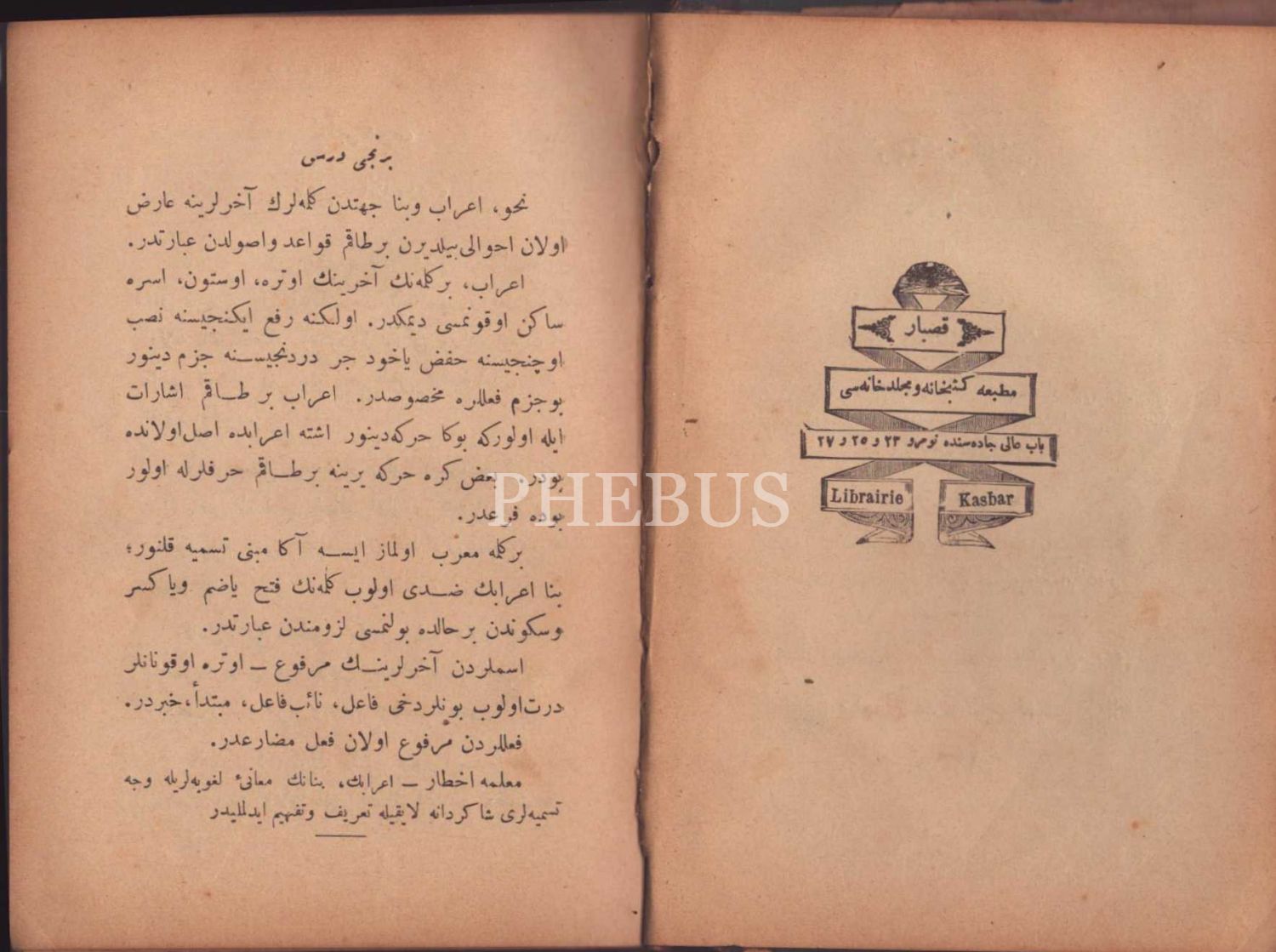 Ay yıldızlı cildinde MUHTASAR TERCÜME-İ GUNYETÜ´T-TÂLİB- Nahiv ve Sarf Kısmı, Mehmed Şükrü, Kasbar Matbaası, İstanbul 1310, 141+87 s., 12x17 cm