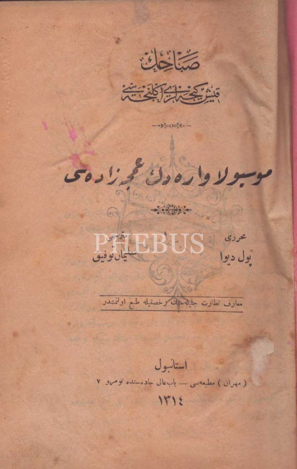 Osmanlı armalı ve ay yıldızlı cildinde MÖSYÖ LAVARED´İN AMCAZÂDESİ, Paul D´ivol, çev. Süleyman Tevfik, Mihran Matbaası, İstanbul 1314, 335 s., 15x22 cm