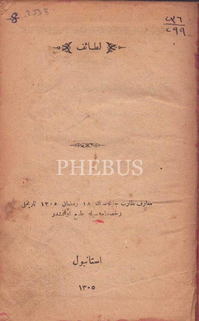 LETÂİF, İstanbul 1305, 60 s., 12x17 cm
