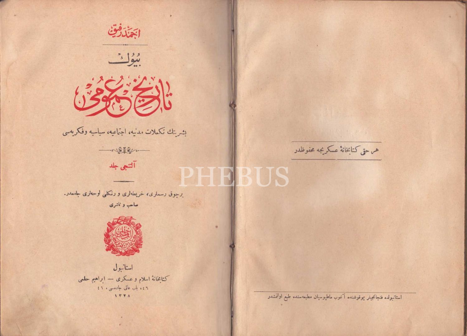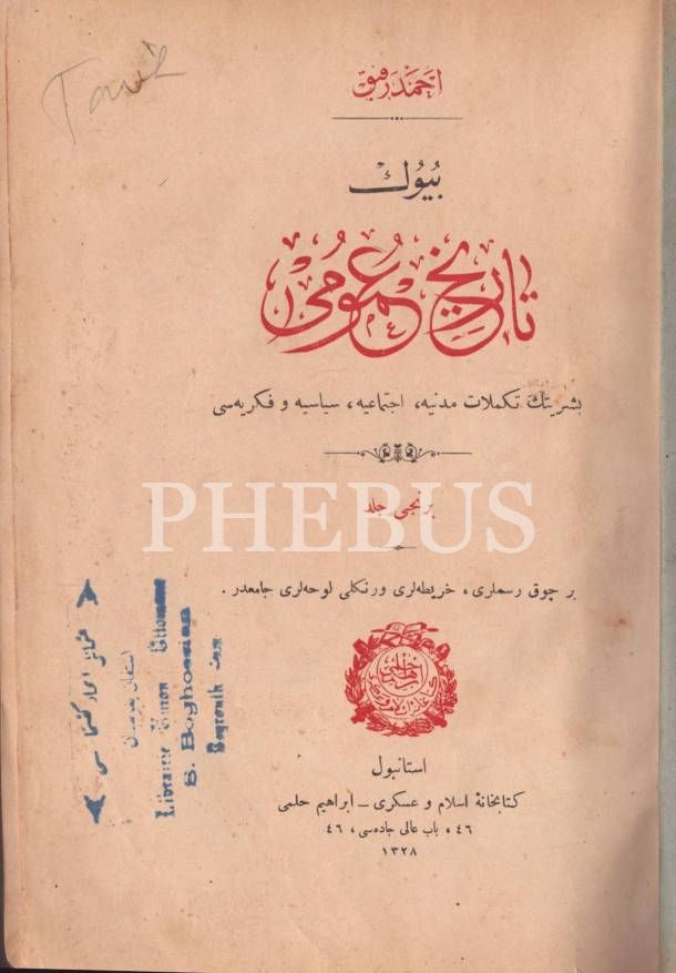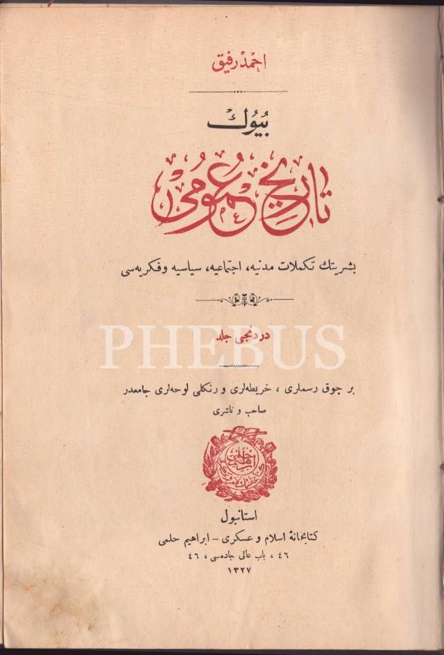 BÜYÜK TÂRÎH-İ UMÛMÎ (6 Cilt), Ahmed Refik, Kitabhane-i İslam ve Askerî, İstanbul 1328, 474 s., 17x24 cm