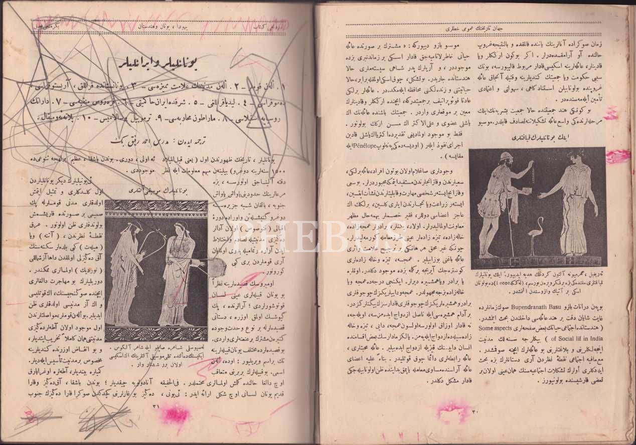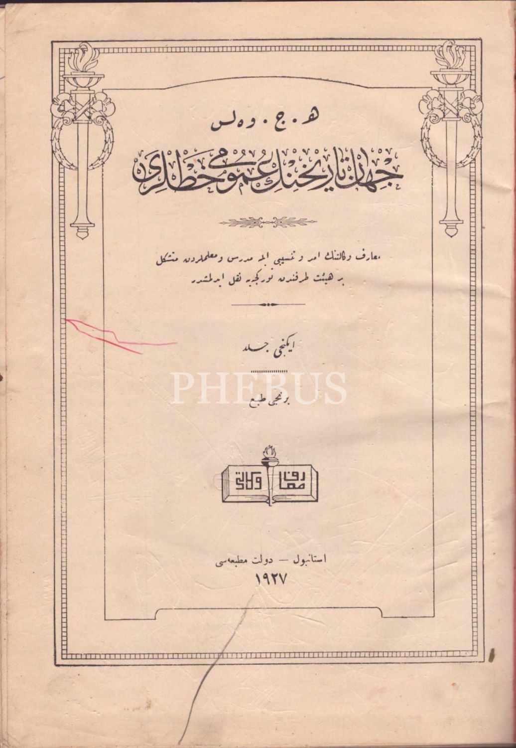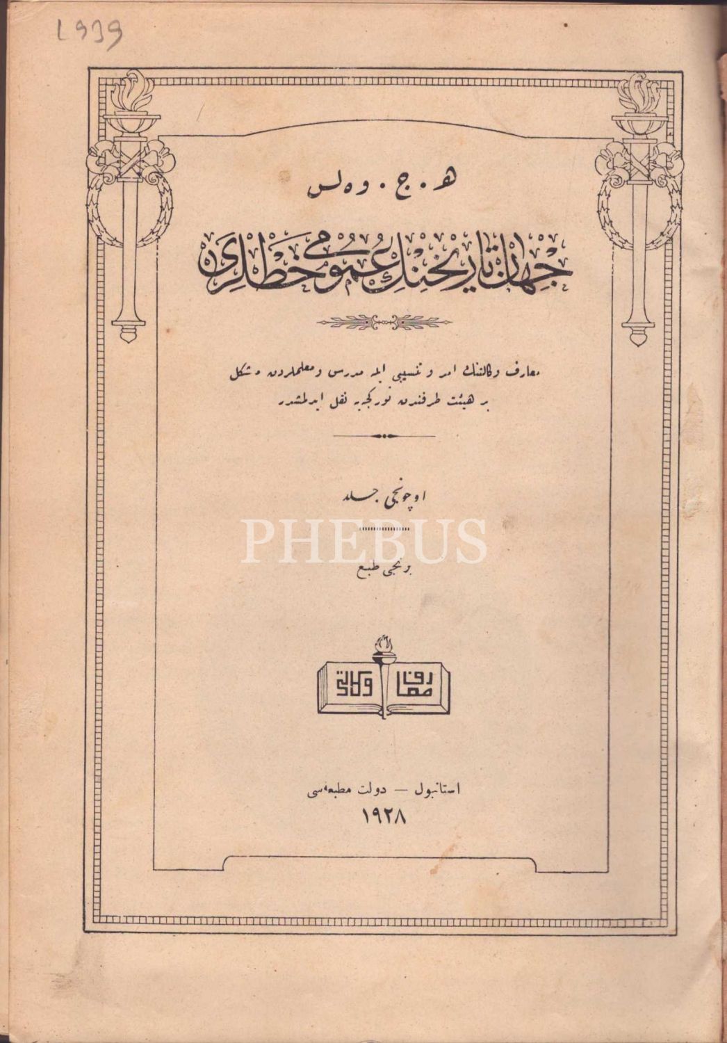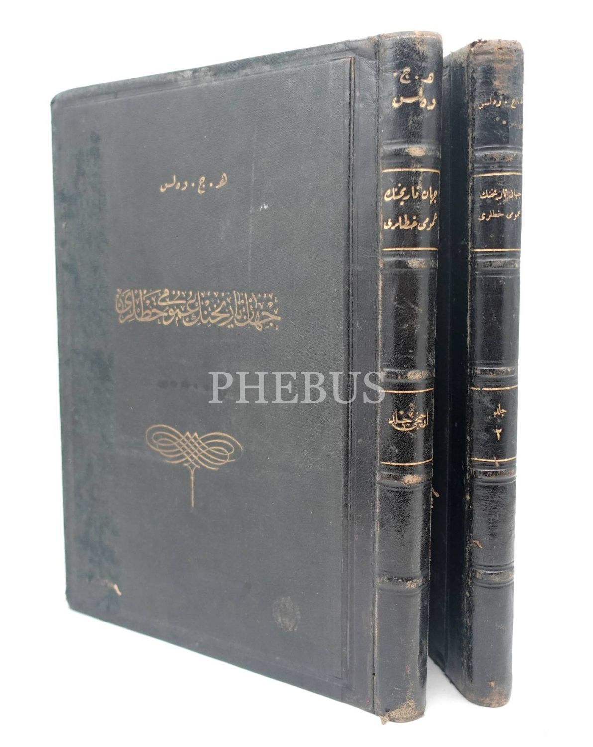 Biri II. Abdülhamid tuğralı cildinde CİHÂN TÂRÎHİNİN UMÛMÎ HATLARI (2. ve 3. Cilt), H. G. Wells, Devlet Matbaası, İstanbul 1927-28, 236+252 s., 21x28 cm