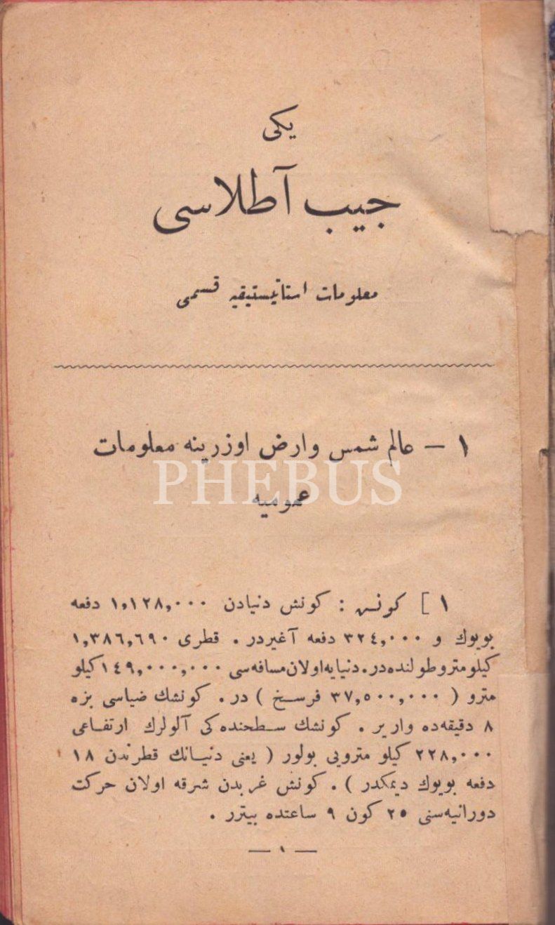 YENİ CEYB ATLASI- Ma´lûmât-ı İstâtistikiyye Kısmı, Kanaat Kütübhanesi, 1332, 72 sayfa metin, 10x18 cm