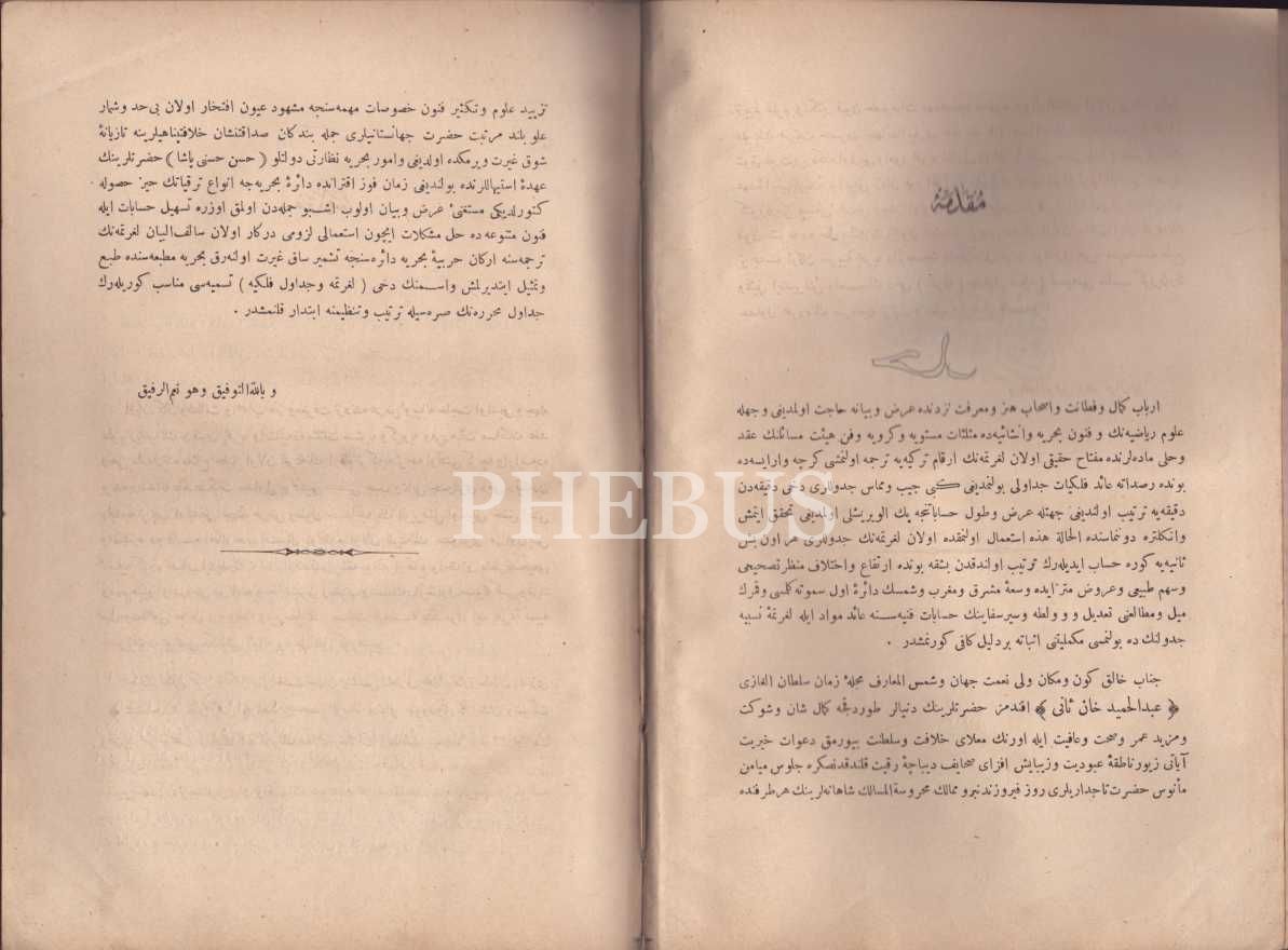 LOGARİTMA VE CEDÂVİL-İ FELEKİYYE ve İLÂVESİ, Bahriye Matbaası, 1307-1309, 24+442+8+46 s., 19x27 cm
