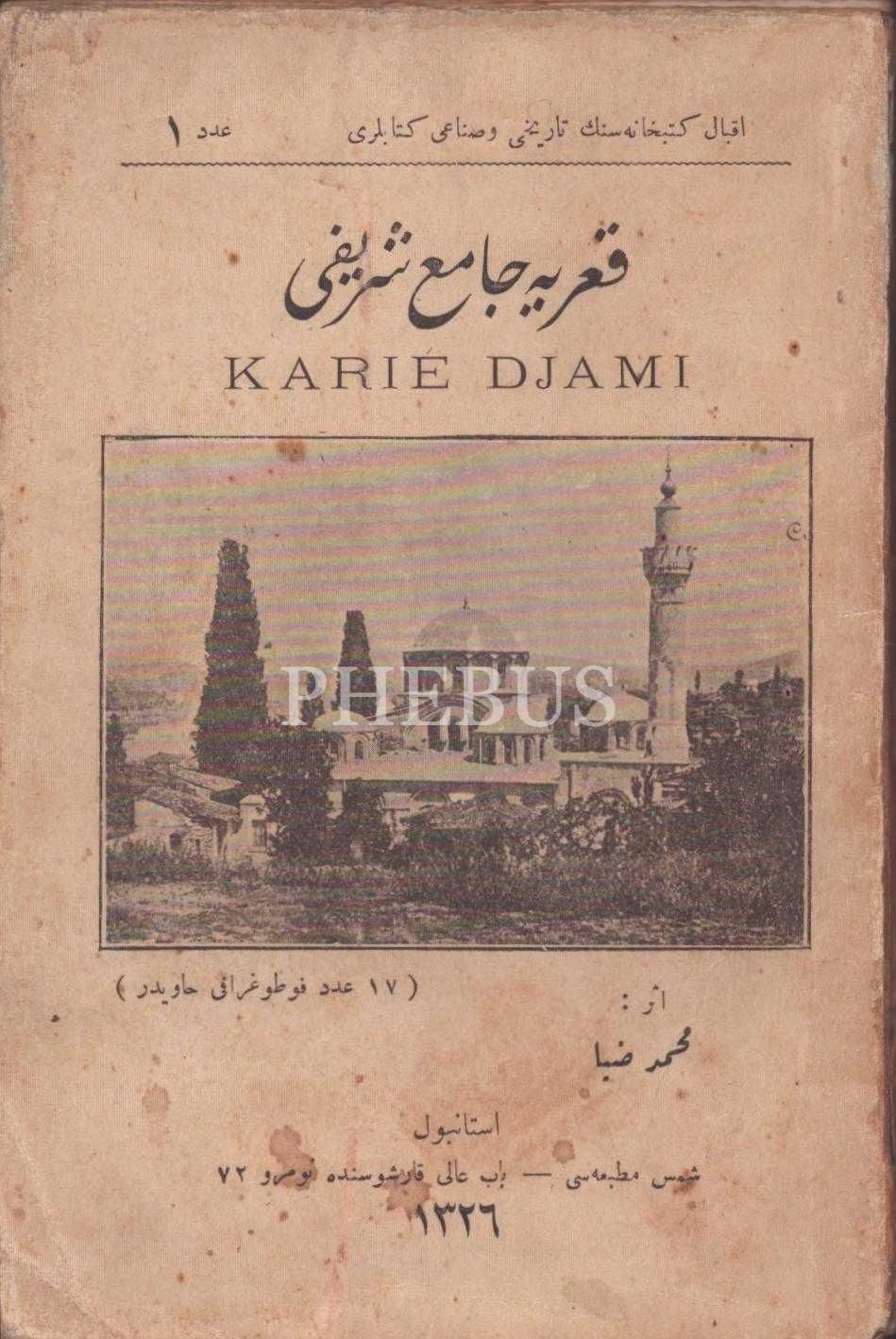 KARİYE CÂMİ-İ ŞERÎFİ, Mehmed Ziya, Şems Matbaası, İstanbul 1326, 119 s., 12x18 cm