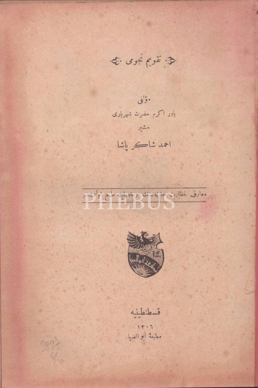 TAKVÎM-İ NÜCÛMÎ, Ahmed Şakir Paşa, Ebuzziya Matbaası, İstanbul 1309, 79 s., 15x21 cm