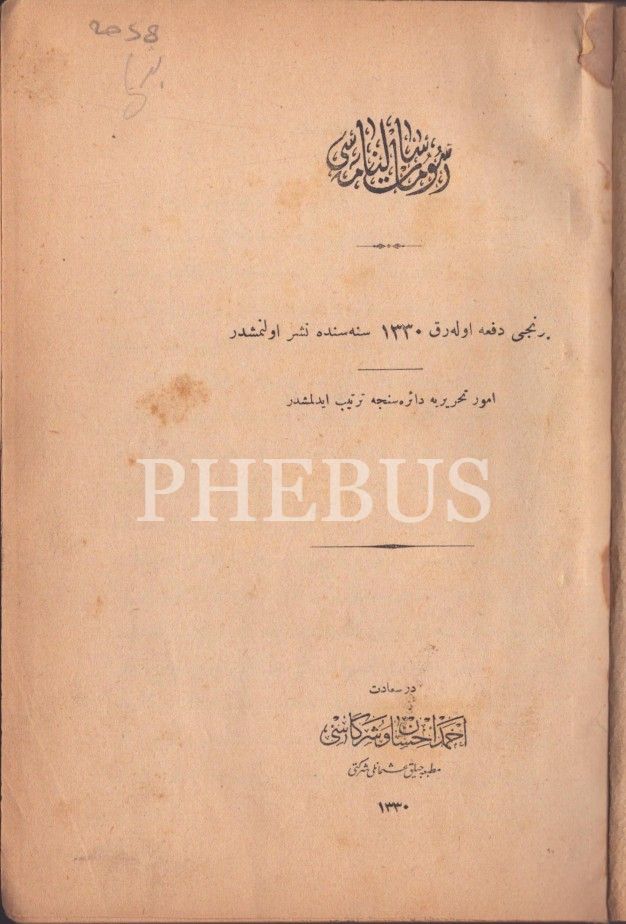 "Birinci defa olarak 1330 senesinde neşrolunmuşdur."