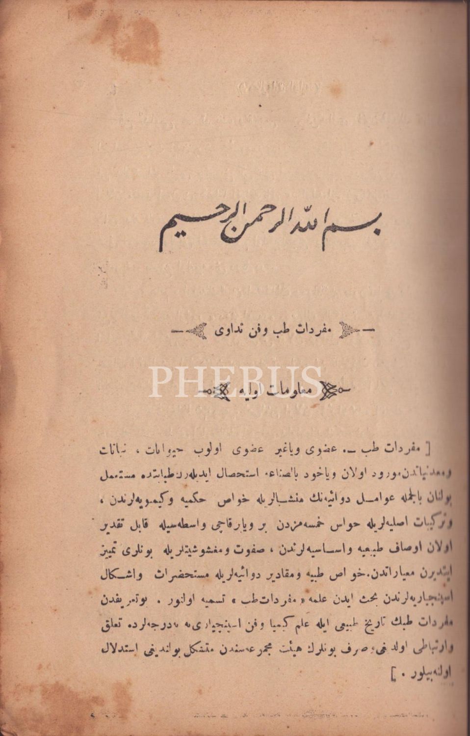 Osmanlı armalı ve ay yıldızlı cildinde MUFASSAL MÜFREDÂT-I TIBB VE FENN-İ TEDÂVÎ (1. Cilt: Medhal ve Edviye-i Muzâdd-ı Taaffün [Antiseptik İlaçlar]- 1. Kısım), Münir-Mehmed Ref´î, Mekteb-i Tıbbiye-i Şahane Matbaası, İstanbul 1322, 485 s., 17x24 cm