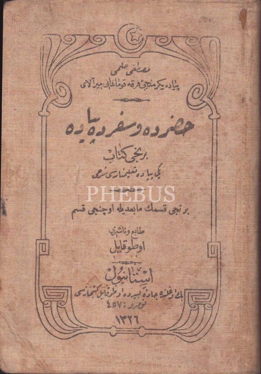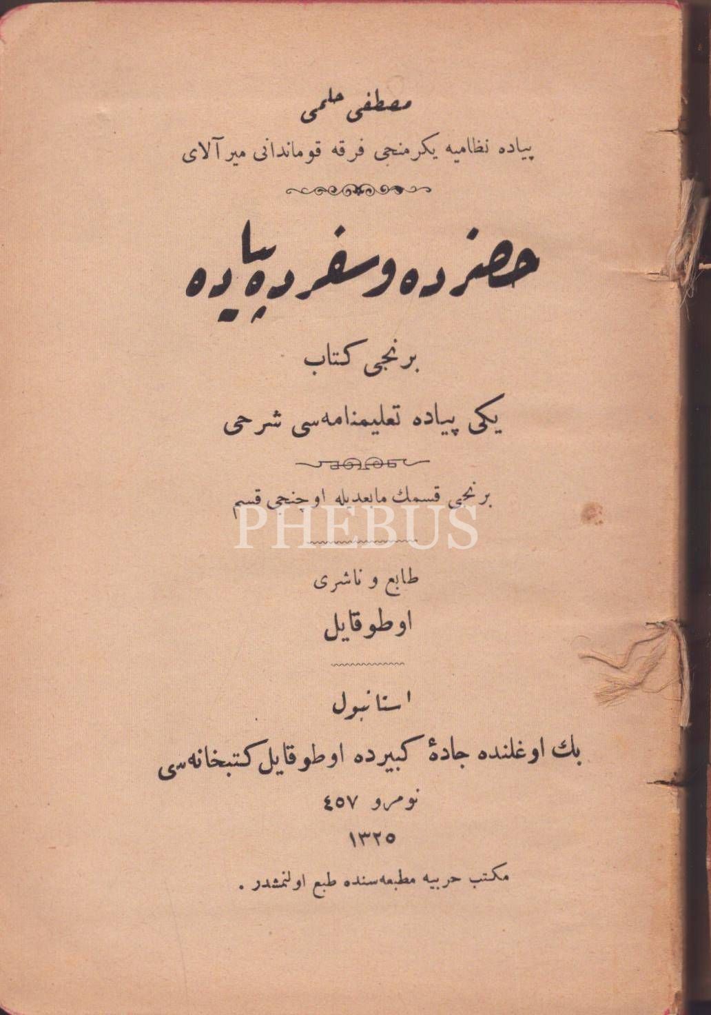 HAZIRDA VE SEFERDE PİYÂDE (1. ve 2. Kitap), Mustafa Hilmi, yayınlayan: Otto Keil, İstanbul 1326, 202+366 sayfa metin 66 sayfa şekil, 13x19 cm