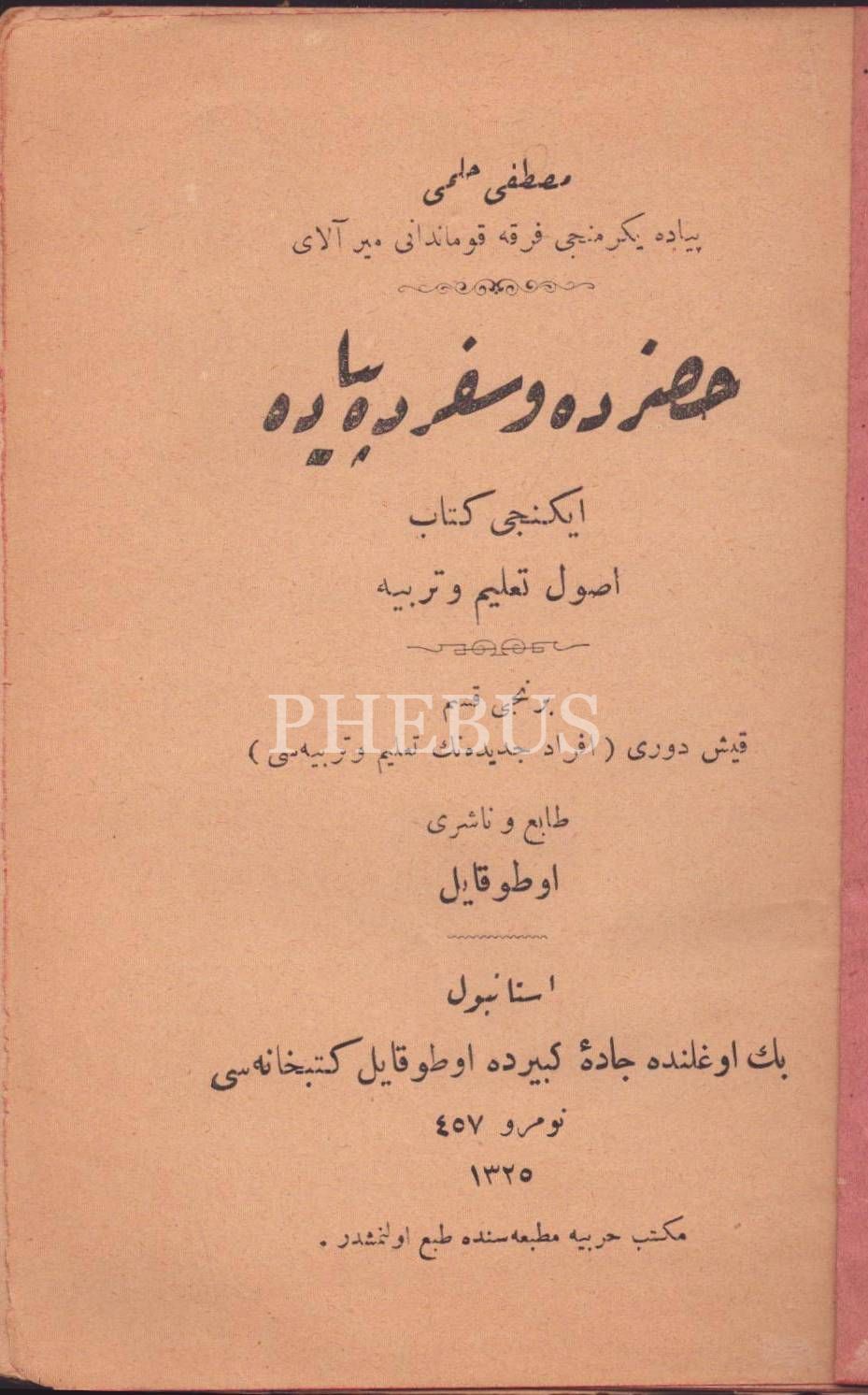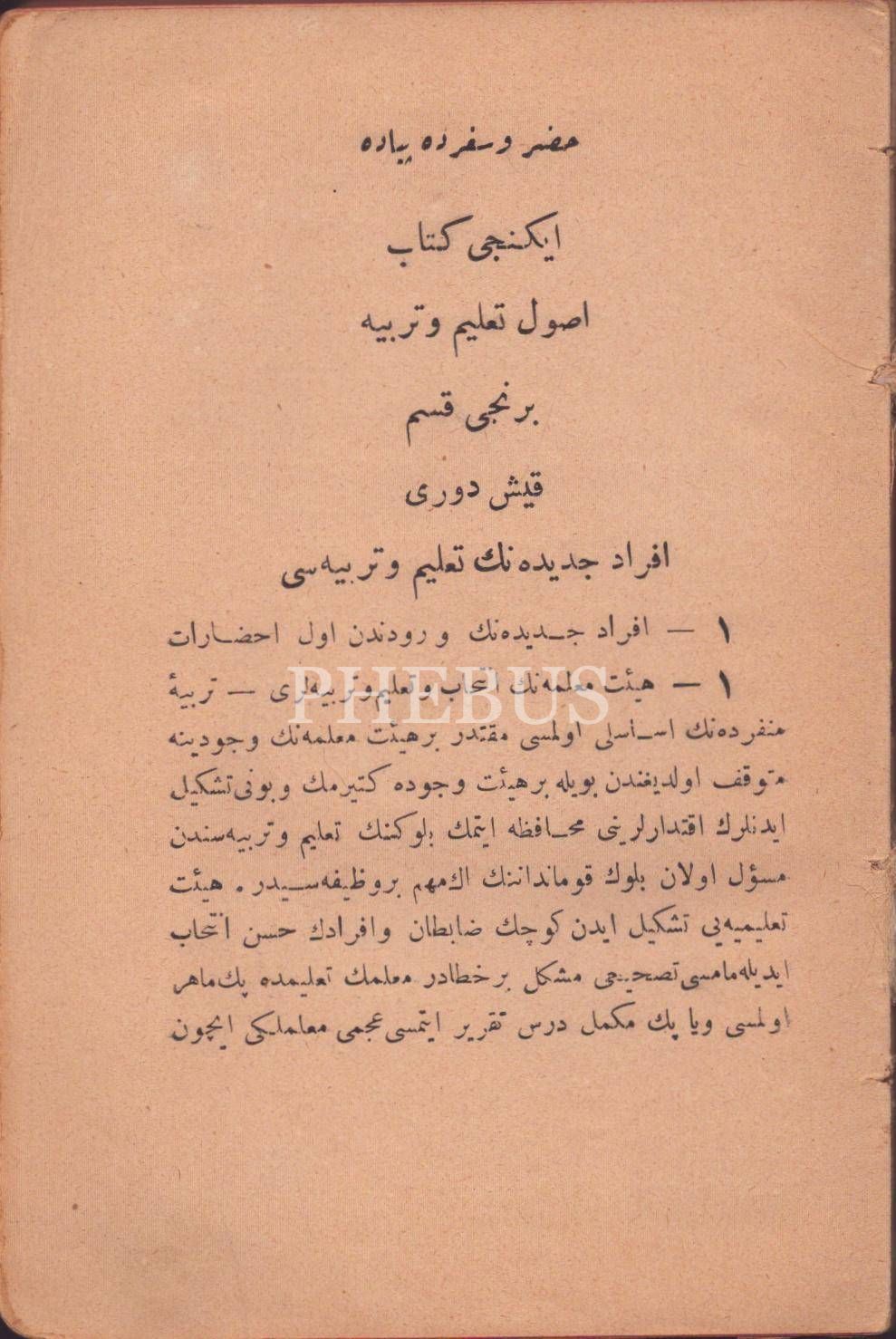 1. Kitap: Yeni Piyâde Ta´lîmnâmesi Şerhi; 2. Kitap: Usûl-i Ta´lîm ve Terbiye Birinin cilt iç sırtı, diğerinin cilt kapakları ayrıktır.