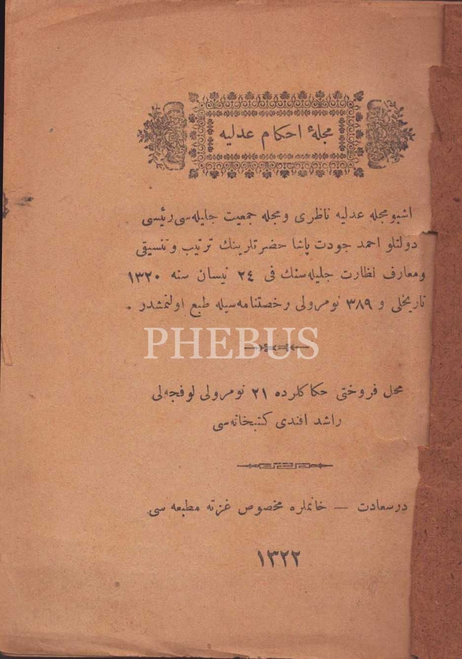 Ay yıldızlı cildinde MECELLE-İ AHKÂM-I ADLİYYE, Ahmed Cevdet Paşa, Hanımlara Mahsus Gazete Matbaası, İstanbul 1322, 633 s., 12x18 cm
