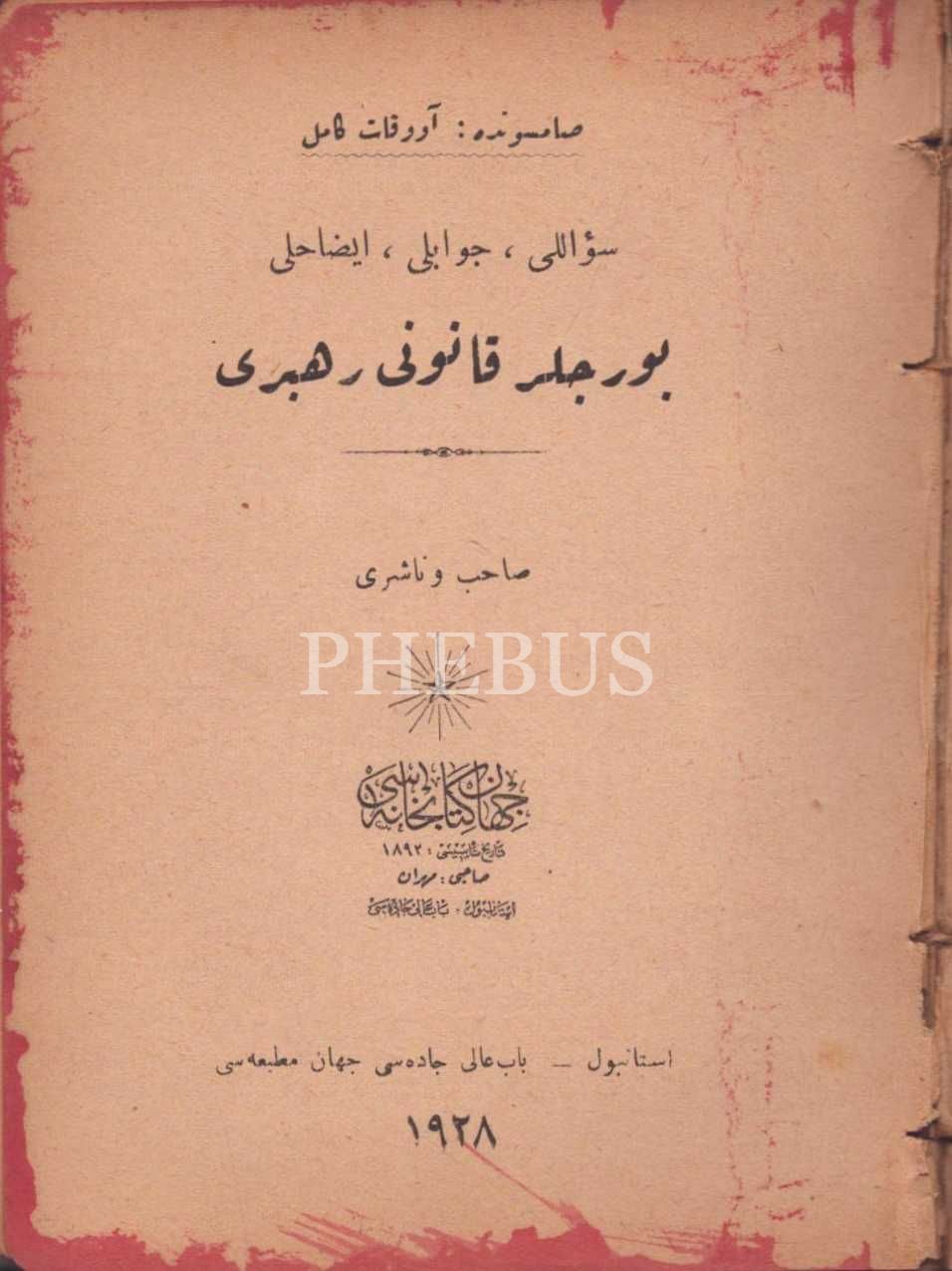 KÂNÛN-I MEDENÎYE ANAHTAR (Şahsın Hukûku- Âile Hukûku- Mîrâs- Aynî Haklar), Said Hikmet, Cihan Matbaası, İstanbul 1927, 149 s.; SUÂLLİ, CEVÂBLI, ÎZÂHLI BORÇLAR KÂNÛNU REHBERİ, Avukat Kâmil, Cihan Matbaası, İstanbul 1928, 315 s., 13x17 cm
