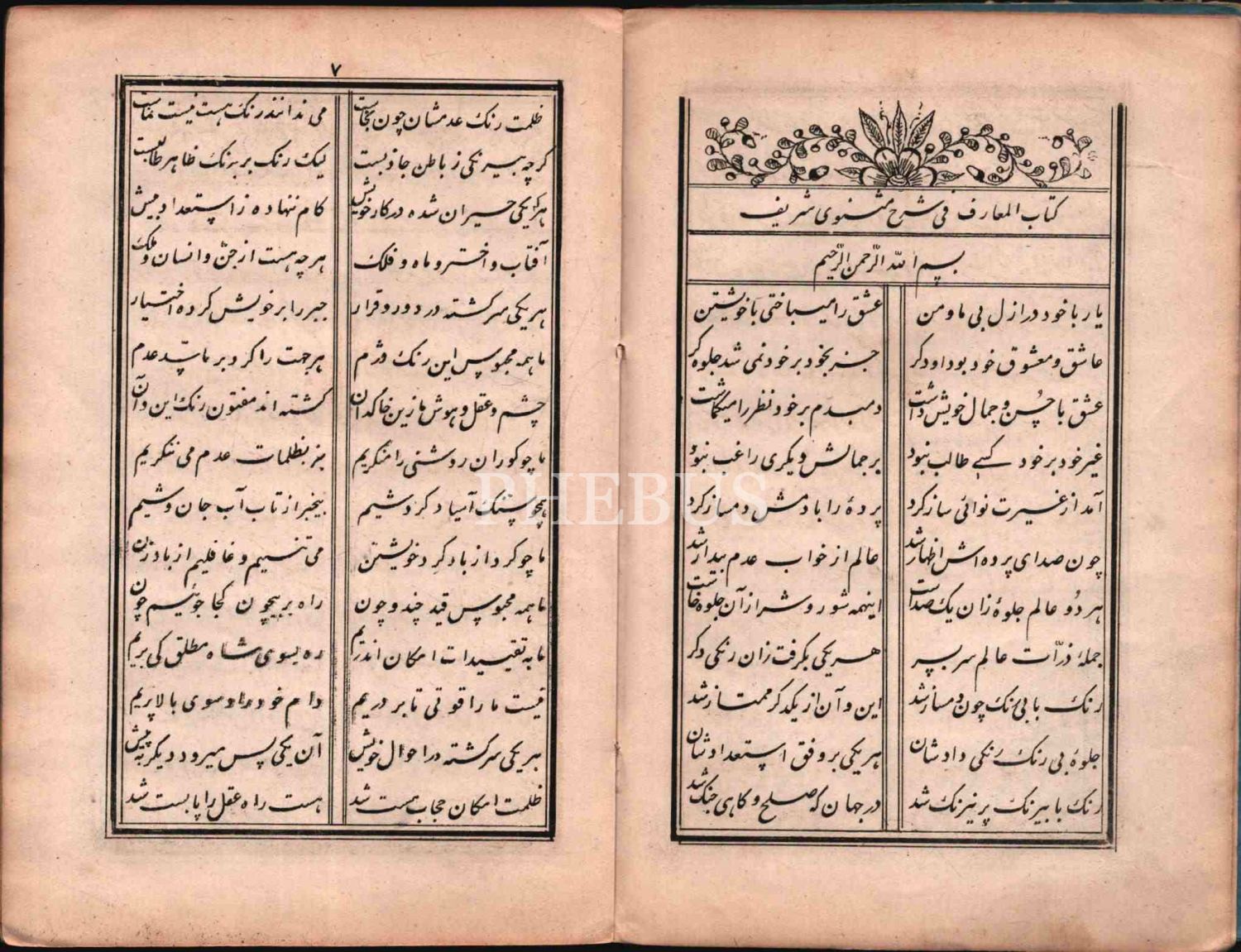 Farsça KİTÂBÜ´L-MAÂRİF FÎ ŞERH-İ MESNEVÎ-İ ŞERÎF, Abdurrahman Hâlis Tâlebânî, Rıza Efendi Basmahanesi, 1284, 65 s., 13x20 cm