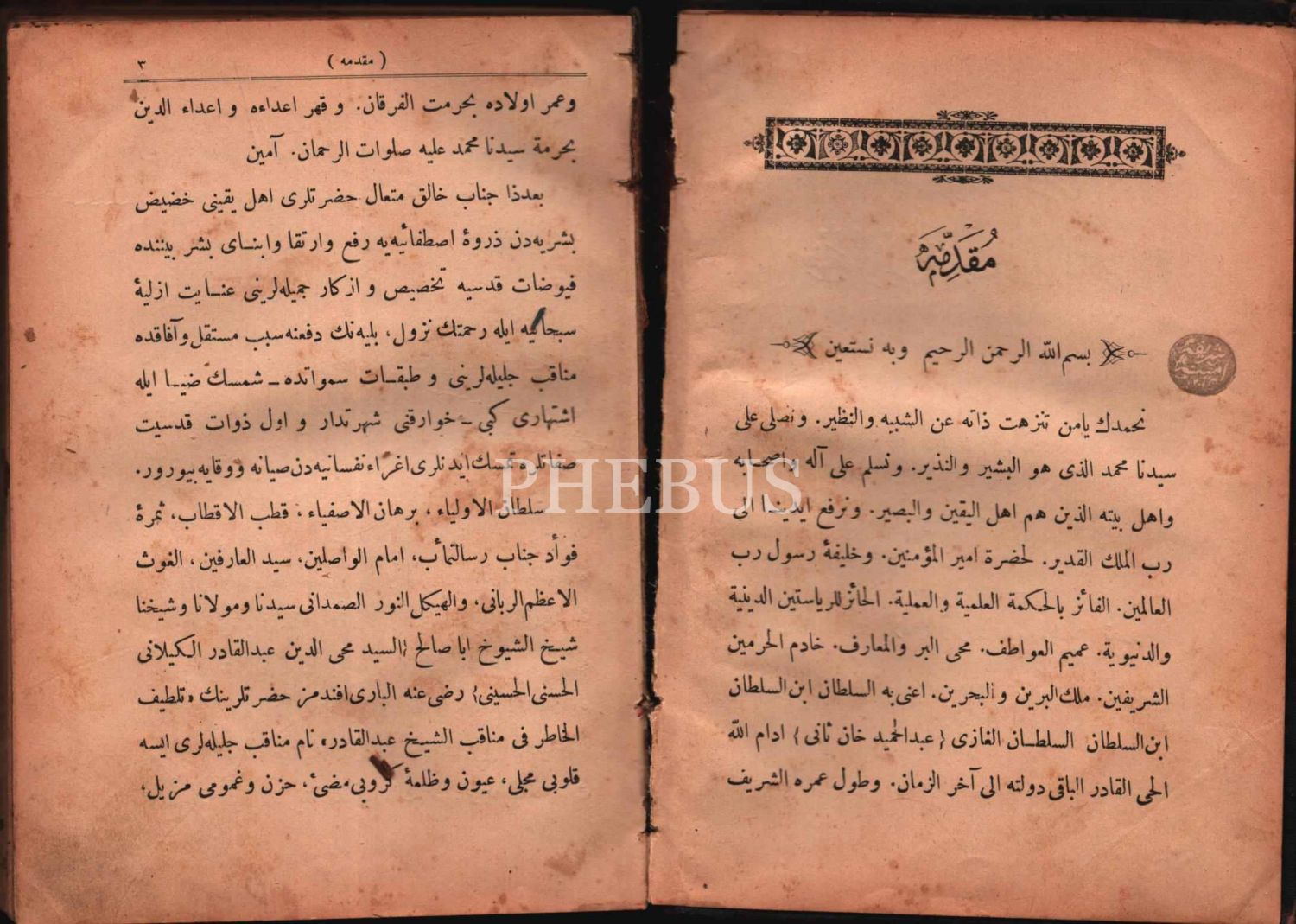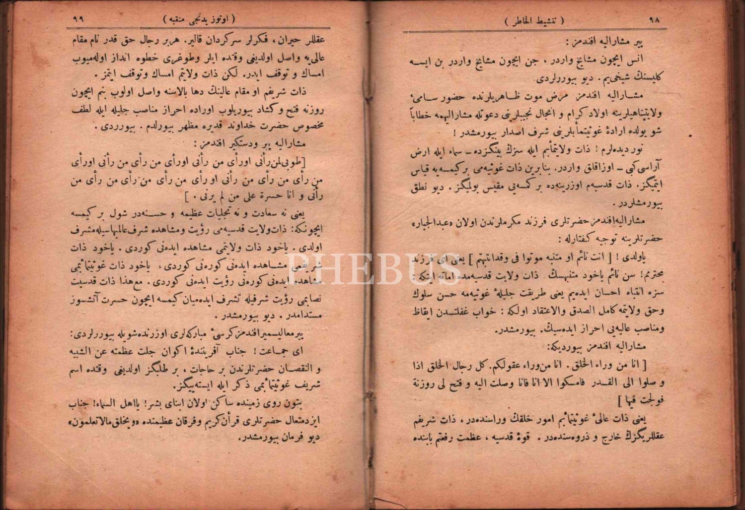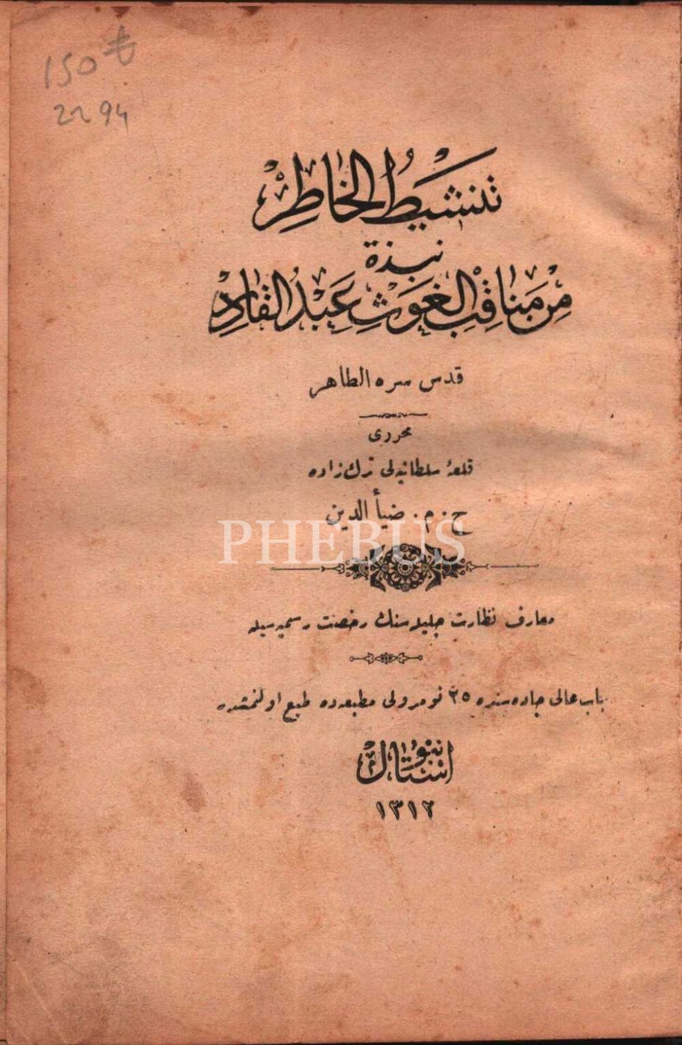 Tuğralı ve ay yıldızlı cildinde TENŞÎTU´L-HÂTIR NEBZETÜN MİN MENÂKIBİ´L-GAVS ABDÜLKÂDİR, H. M. Ziyaeddin, İstanbul 1312, 160 s., 14x20 cm