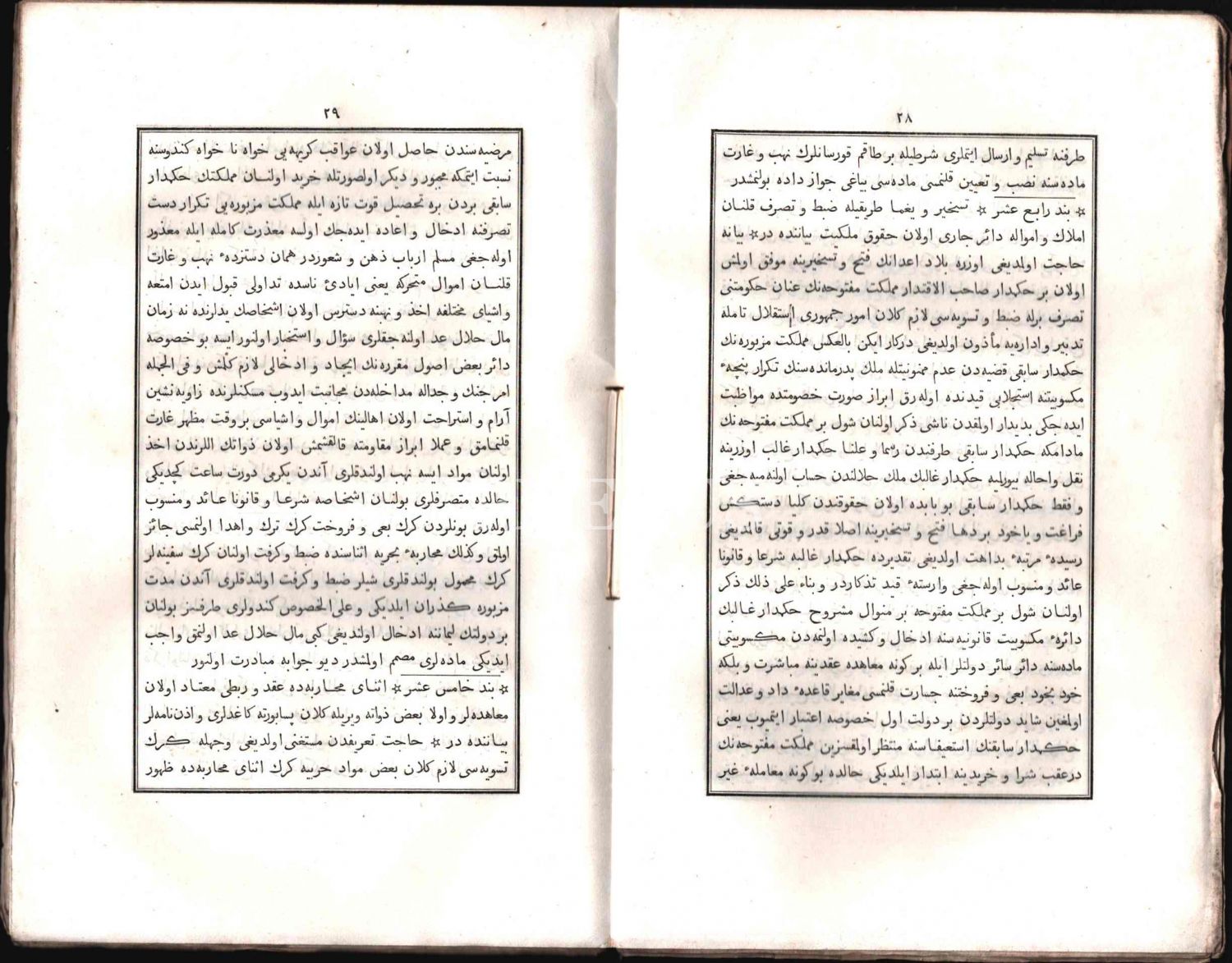 Metnin bitiş paragrafı: "Malum ola ki coğrafya haritalarından tebeyyün eylediği üzere Asya ve Afrika ve Amerika kıtalarının bâlâda zikr ve ta´dad olunan düvel-i muhtelife kalemrûlarından maada akvam-ı mütenevvia ile niçe niçe memalik-i vâsia ve mikdarı hesaba gelmez düvel-i sagîreyi müştemil olduğu derkâr ise de akvam-ı mersumeden bazısı sureti insan sireti hayvan makulesi bir cins-i nâdân olarak bir gûne hükümeti kabul etmemiş ve bazısı dahi taht-ı nizam-ı hükümete idhal olunmuş iken politikaca matlub olan mertebe-i vüs´ ve nüfuza vasıl olamamış oldukları mülahazasıyla ahvalinin iş´arından ictinaben olkadar ile kifayet olunmuşdur."