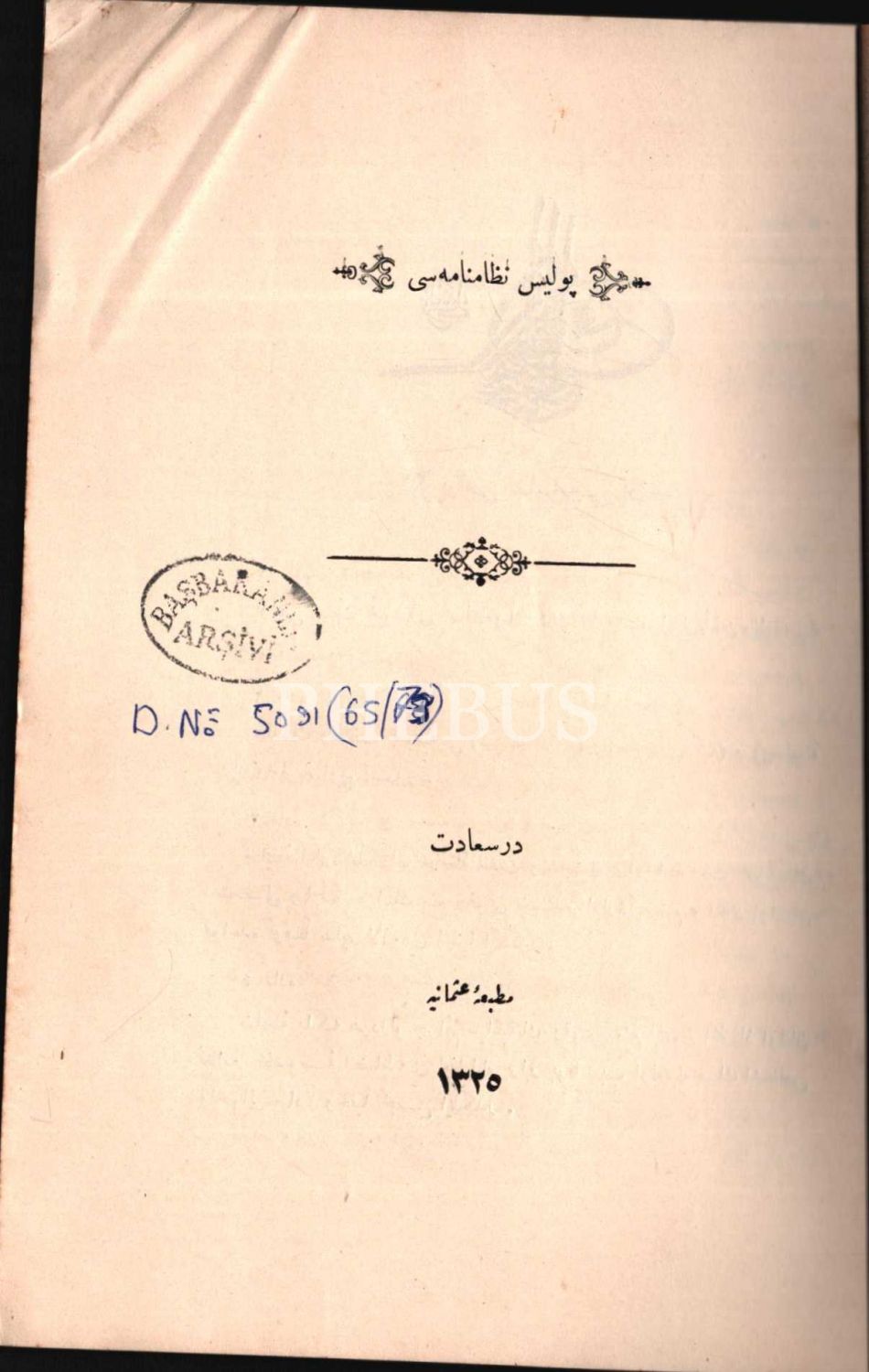 POLİS NİZÂMNÂMESİ, İstanbul 1325, 43 s., 17x24 cm