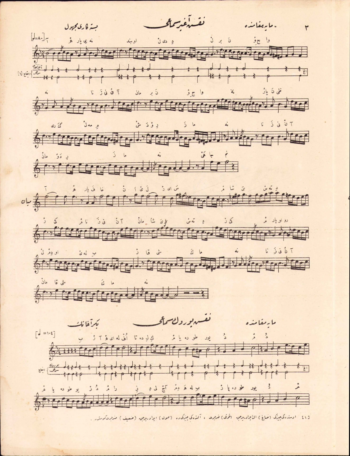 Osmanlıca nota, Maye makamı, Nakış ağır semai, Darülelhan Külliyatı no.3, 24x35 cm