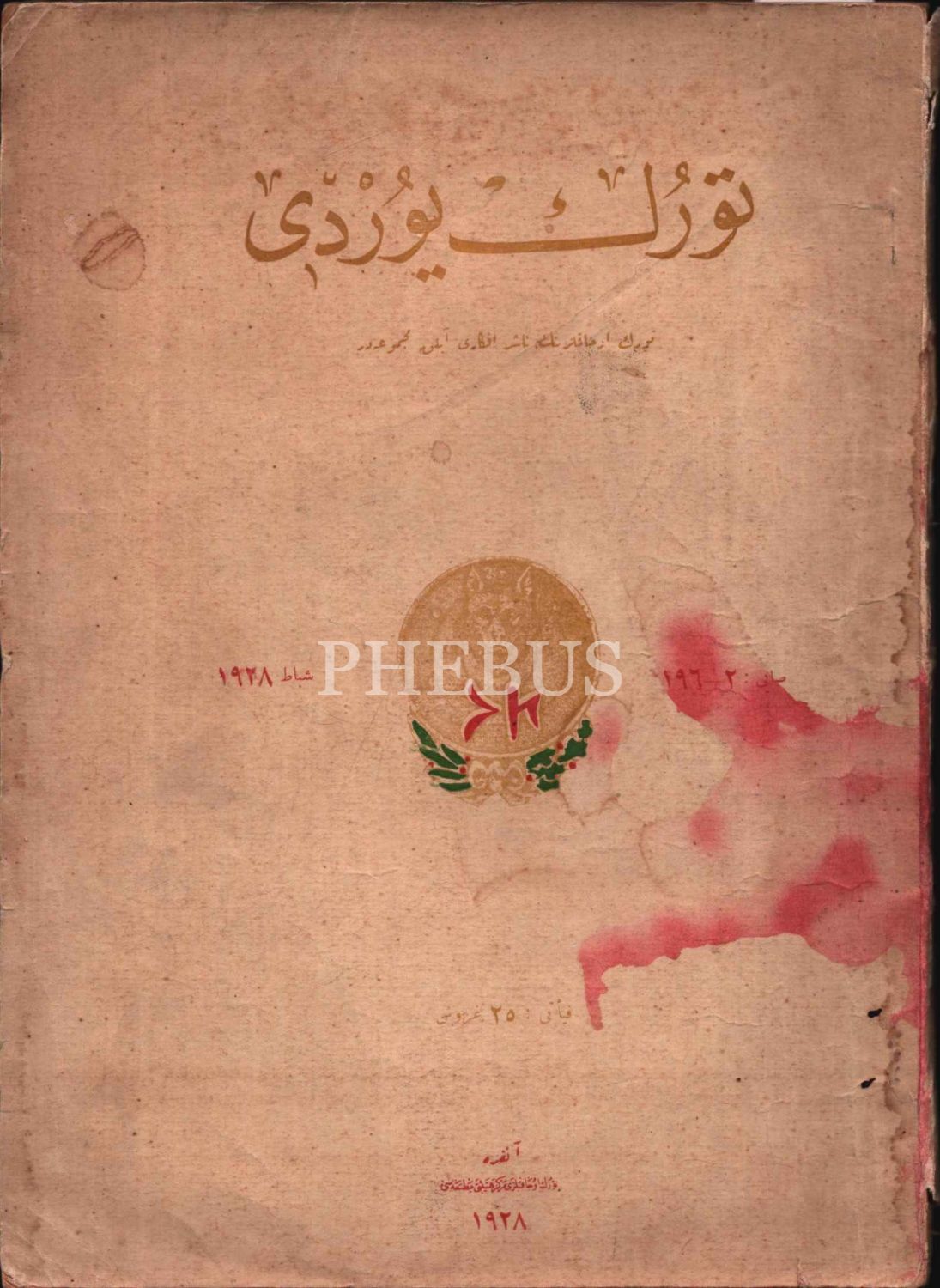 Türk Ocakları´nın yayın organı TÜRK YURDU dergisinin Şubat 1928 tarihli 2-196. sayısı, 63 s., 20x28 cm