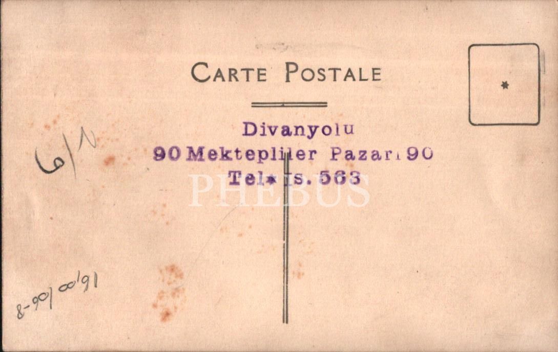 Arka yüzü "Divanyolu / Mektepliler Pazarı" damgalı.