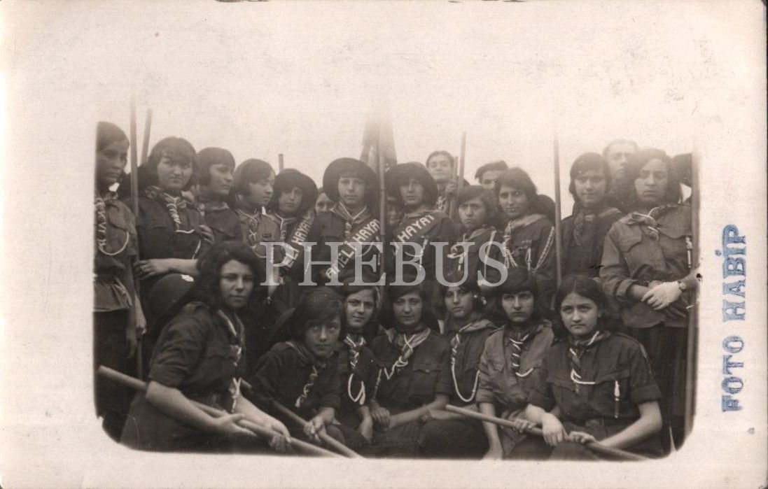 Amelî Hayat Mektebi izcilerinin "Foto Habip" damgalı toplu hatıra fotoğrafı, 14x9 cm