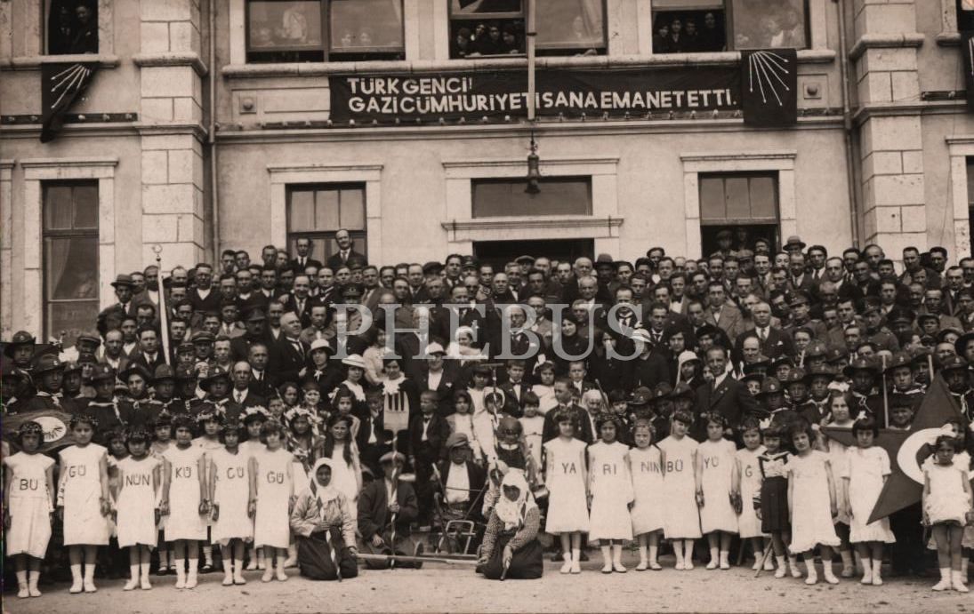 "Bolu. 23-4-935" İlk sırada bulunan beyaz elbiseli küçük kızların üzerindeki harfler, "Bugünün Küçüğü, Yarının Büyüğüyüz" cümlesini oluşturmaktadır.