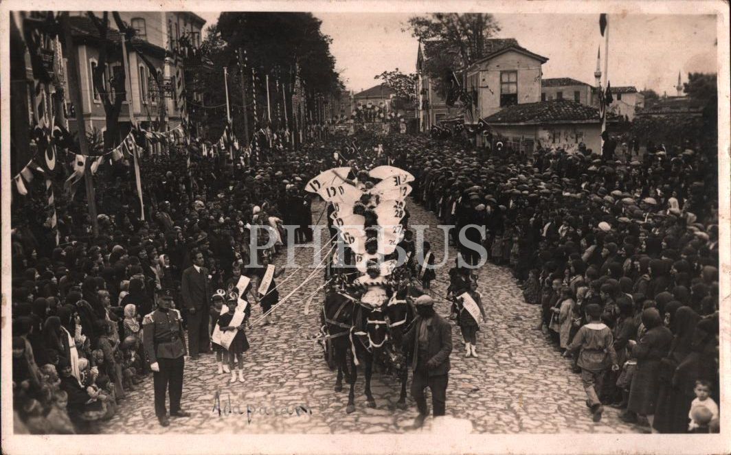 Adapazarı Sabiha Hanım Mektebi öğrencilerinin Cumhuriyet Bayramı geçidinden bir enstantane, 14x9 cm