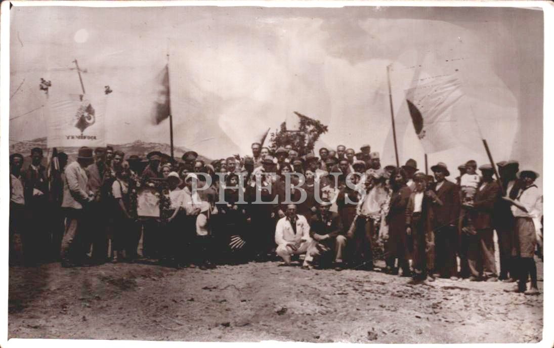 "Yenifoça Spor Kulübü" flamasının görüldüğü bir topluluk hatıra fotoğrafı, 14x9 cm