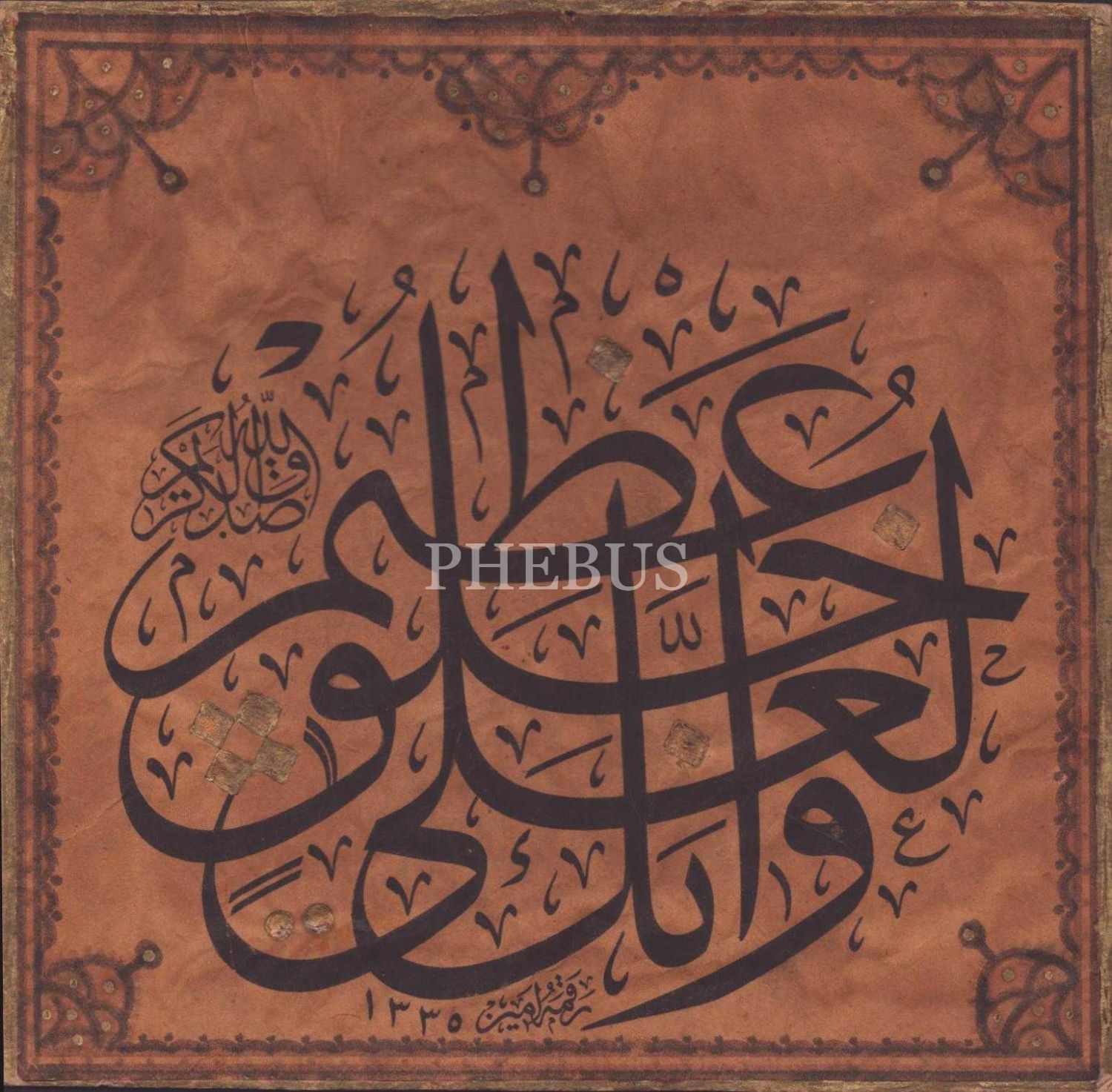 Neyzen Emin Dede'nin hattıyla, baskı sülüs istifli ayet: "Şüphesiz sen pek yüce bir ahlaka sahipsin" (Kalem/4), 1335, 19x20 cm