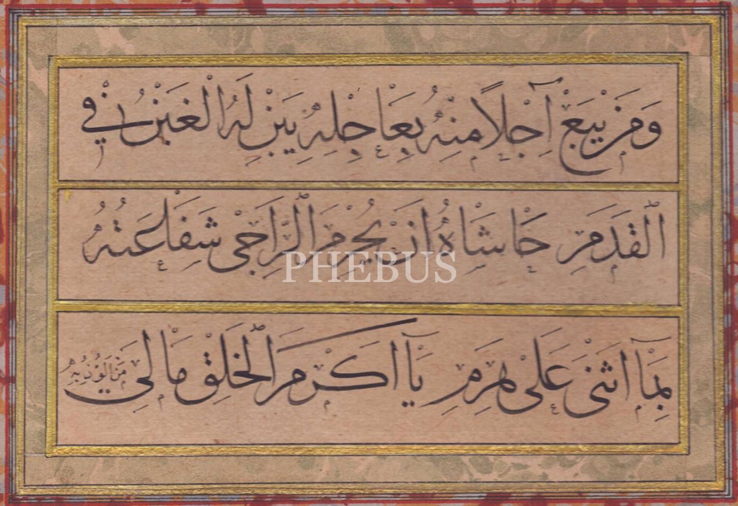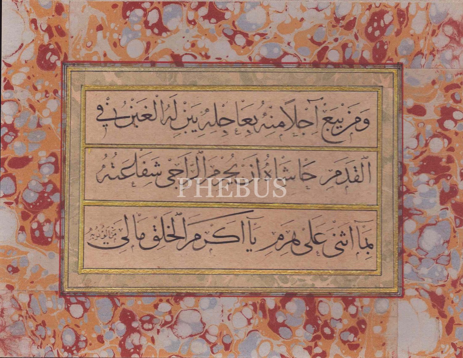 Sülüs hatla Kasîdetü´l-Bürde´den bir bölüm, ebru pervazlı, 22x28 cm