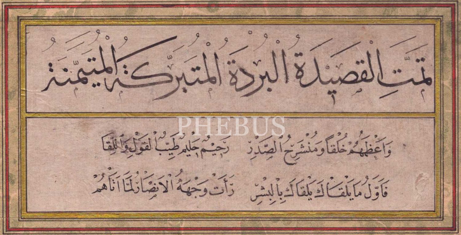 Sülüs-nesih hatla Kasîdetü´l-Bürde sonu, ebru pervazlı, 19x29 cm