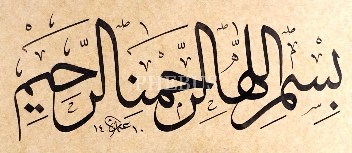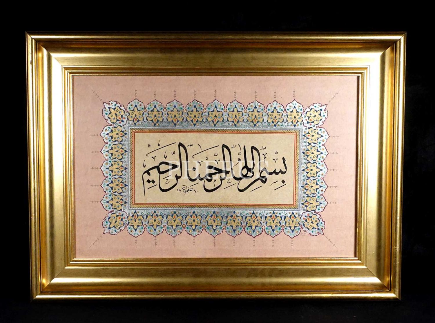 Celî sülüs müselsel besmele, Osman [Rebii Önol] ketebeli, 1410, tezhip: Safiye Ocaklı, çerçeve: 56x78 cm