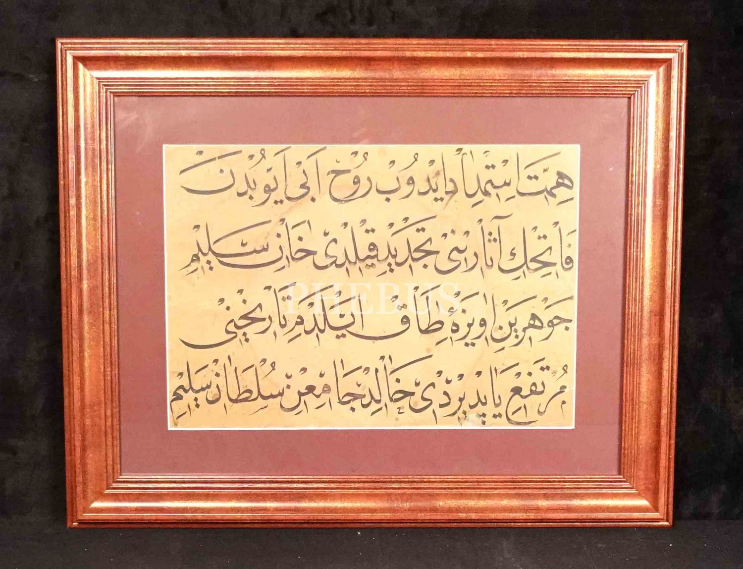 Celî nesih dörtlük: "Himmet-i istimdâd edub rûh-ı Ebî Eyyûb´dan", çerçeve: 46x58 cm