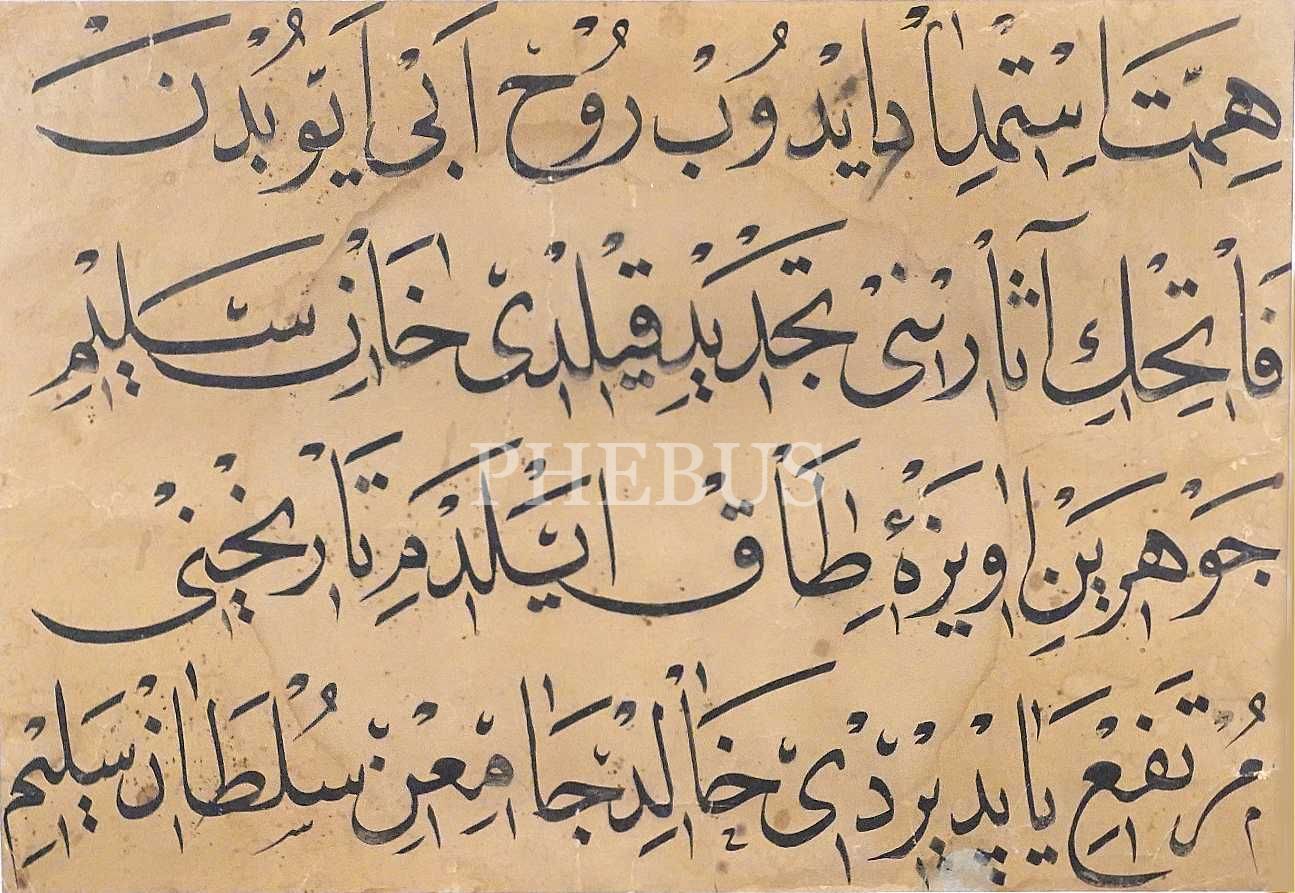 Okunuşu: "Himmet-i istimdâd edüb rûh-ı Ebî Eyyûb´dan; Fâtih´in âsârını tecdîd kıldı Hân Selîm; Cevherin âvîze-i tâk eyledim târîhini; Mürtefi´ yapdırdı hâlid-i Câmiin Sultân Selîm"