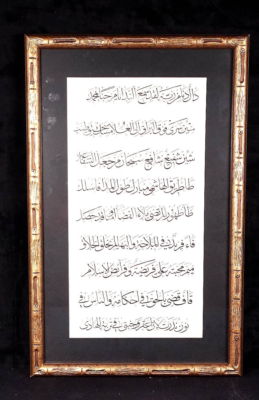 Sülüs Arapça kaside, çerçeve: 37x57 cm