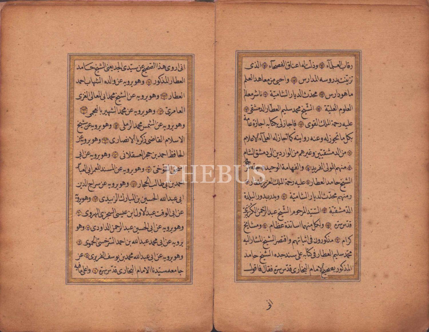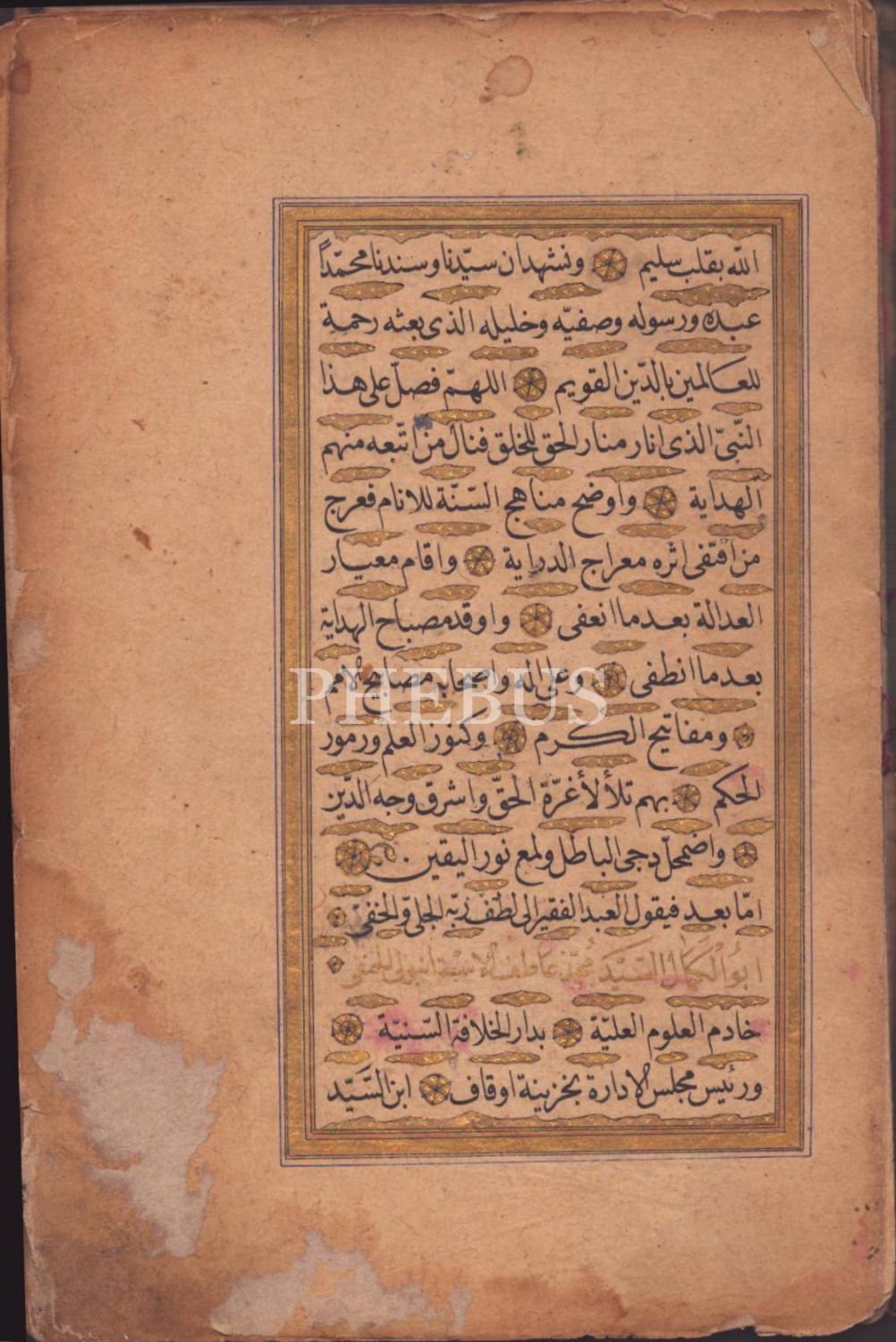 Süslemeli deri cildinde, Müftizâde Seyyid Fehmi b. Mustafa el-Ofî´ye Ebulkemâl es-Seyyid Muhammed Atıf İstanbulî tarafından verilen altın cetvelli ilmiye icazetnamesi, 1311, 34 sayfa, 14x21 cm