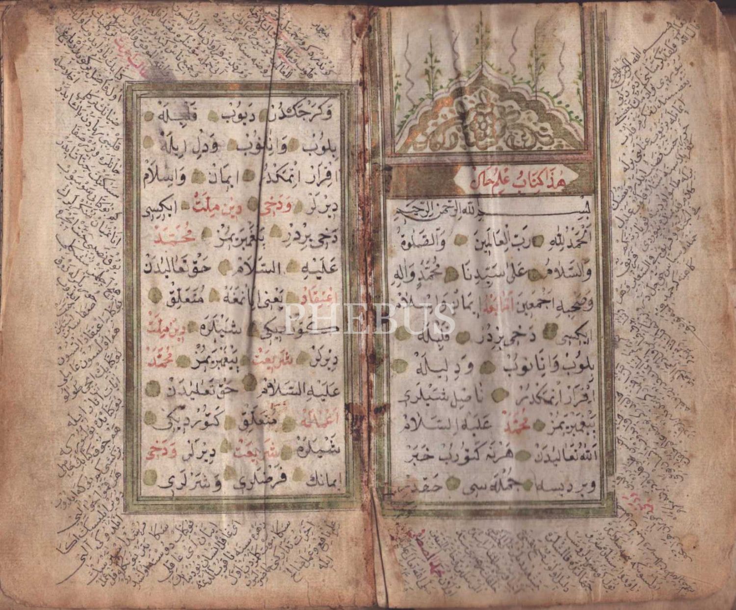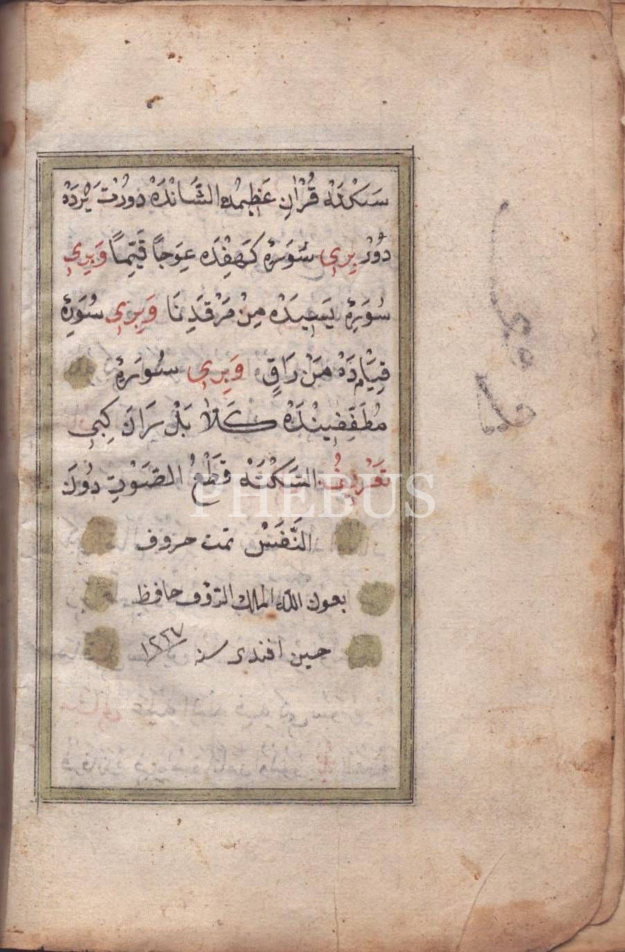 Deri cildinde Hafız Hüseyin Efendi hattıyla altın cetvelli KİTÂB-I İLMİHÂL ve KİTÂB-I TECVÎD, 1227, 72 sayfa, 12x17 cm